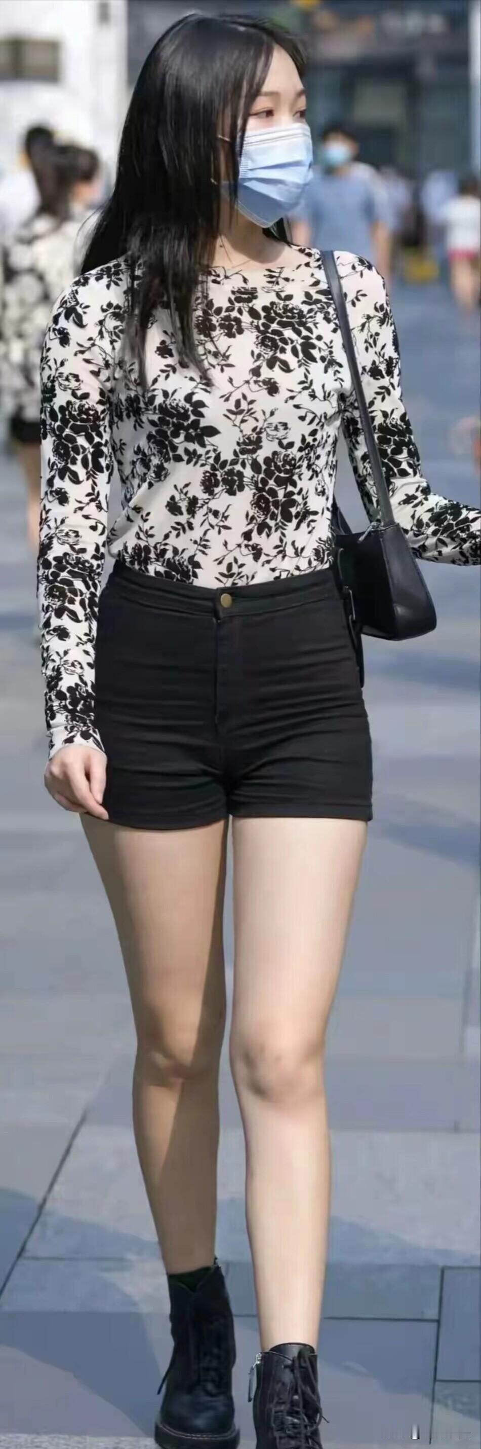 碎花长袖上衣配黑色短裤,再搭双马丁靴,简约又有范儿,日常这么穿舒适还好看。