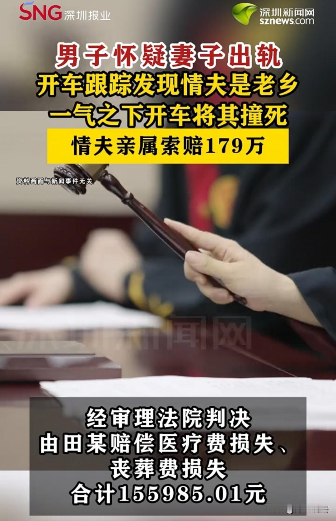 浙江,男子发现妻子和老乡有隐情,便直接开车撞上了两人,两人均受到了不同程度的伤。男子还不解气,直接跳下车,拿着铁棍又开始殴打两人,结果老乡不治身亡,妻子也是轻伤一级。男子被判处无期徒刑,不过老乡的弟弟提起上诉,要求男子赔偿179万元,最后,法院判决只需要支付15.6万。 田某和妻子是多年的夫妻,关系曾经也好过,不过谁又架得住柴米油盐呢? 日子过得平淡了,两人的关系也就不如当初那么甜蜜,反而还有一点相看生厌的感觉。 不过,田某的责任心还是比较强,不管两人的关系有多么难看,他还是坚守本分,再怎么样也得看在孩子份上,把这个家维持下去。 可妻子不这么想,人生短短几十年,固然要为了孩子而活,但是自己的快乐也不能少呀。 在家里成天看着那张不喜欢的脸,真的是一种煎熬。 久而久之,她就有了另寻他人的想法。但如果离婚再去找,成本有点高,再加上自己这把年纪了,也不一定能够遇到对自己100%好的人。 要想降低成本,那就只有家不能散,外面找一个知冷知热、能陪自己说说话的就行。 环顾四周,自己的朋友圈也就那么大,该去找谁呢? 不可能在网上找,万一不是知根知底的,被骗了还不好。 最后,她和田某的老乡看对了眼,两人的心思一致,就是活在当下、过好当下,对于家庭,他们还是有责任感的,不能散。 就这样,同频的两个人走在了一起。 本来说是不影响自己家庭,回去后还是依然要对老公好。 可话虽如此,人的心一旦变了,回去再看到自己老公的时候,真的有点想逃离的感觉。 这种细微的变化,田某是看在眼里、记在心上,以一个过来人的经验,感觉妻子外面有人。 为了证实自己的想法没错,当妻子打扮得花枝招展出门后,他就紧随其后跟上了。 然后过了几道巷子,那个男人真的出现了,当妻子看到对方的时候,就像小蜜蜂一样飞了过去。 田某恨得牙痒痒,气妻子背叛了自己的婚姻、背叛了家庭,一点都不守妇道。 而对于那个男人,他也非常眼熟,正是自己的老乡。 这个人跟自己相比也强不到哪里去,不就高一点、帅一点、有钱一点嘛。 田某越想越生气,直接一脚油门就冲了过去,吓得两人撒手就跑。 人哪里跑得过车呢?两人都被撞倒了,还想拖着受伤的身体往外跑。 田某现在的恨意已经冲昏了头脑,他不允许两个人在自己跟前跑掉,赶紧下车,拿出铁棍就追上两人,开始一顿乱打。 这时,周围人看到后,也赶紧报警。等民警来了后,老乡已经奄奄一息,妻子也痛得在地上哇哇大叫。 而田某也知道自己的行为已经违法,此时的局面已是他无法控制的,就只能等待后续两人的具体情况了。 可没如他愿,又如他愿:老乡救治无效离世了,而妻子则被界定为轻伤一级。 这下田某心中的大石块落了地,老乡这一死,他被判故意杀人、造成严重后果是铁板钉钉的事情。 最后,田某被判无期徒刑,这也是他应得的,谁叫他那么冲动呢? 妻子外面有人,完全可以提起离婚、分得相应财产,可他偏要走这最危险的路。 本以为这样就结束了,谁知道老乡的弟弟不服,提起上诉,要求田某赔偿179万元。 他说自己和哥哥兄弟情深,失去哥哥后寝食难安,必须得为哥哥讨要说法。 最后,法院判决:只需要田某承担对方医药费和丧葬费共计15.6万元,其余的诉讼请求全部驳回。 《刑法》第二百三十二条,故意杀人的,处死刑、无期徒刑或者十年以上有期徒刑;情节较轻的,处三年以上十年以下有期徒刑。 田某因为妻子出轨老乡,故意开车撞、拿铁棍殴打两人,导致老乡死亡,这明显是故意要剥夺他人生命,符合故意杀人罪的条件,所以最后被判处无期徒刑。 《最高法关于适用〈刑事诉讼法〉的解释》第一百九十二条,对附带民事诉讼作出判决,应当根据犯罪行为造成的物质损失,结合案件具体情况,确定被告人应当赔偿的数额。犯罪行为造成被害人人身损害的,应当赔偿医疗费、护理费、交通费等为治疗和康复支付的合理费用,以及因误工减少的收入。造成被害人残疾的,还应当赔偿残疾生活辅助器具费等费用;造成被害人死亡的,还应当赔偿丧葬费等费用。 老乡的弟弟要求田某赔179万(包含精神损失费),但法院只判赔15.6万(医药费、丧葬费),就是因为刑事附带民事赔偿只认实际产生的物质损失,精神损失费这类不包含在内,所以多要的部分被驳回了。 对于此事,大家如何看待? 素材来源于:深圳新闻网2025年10月15日
