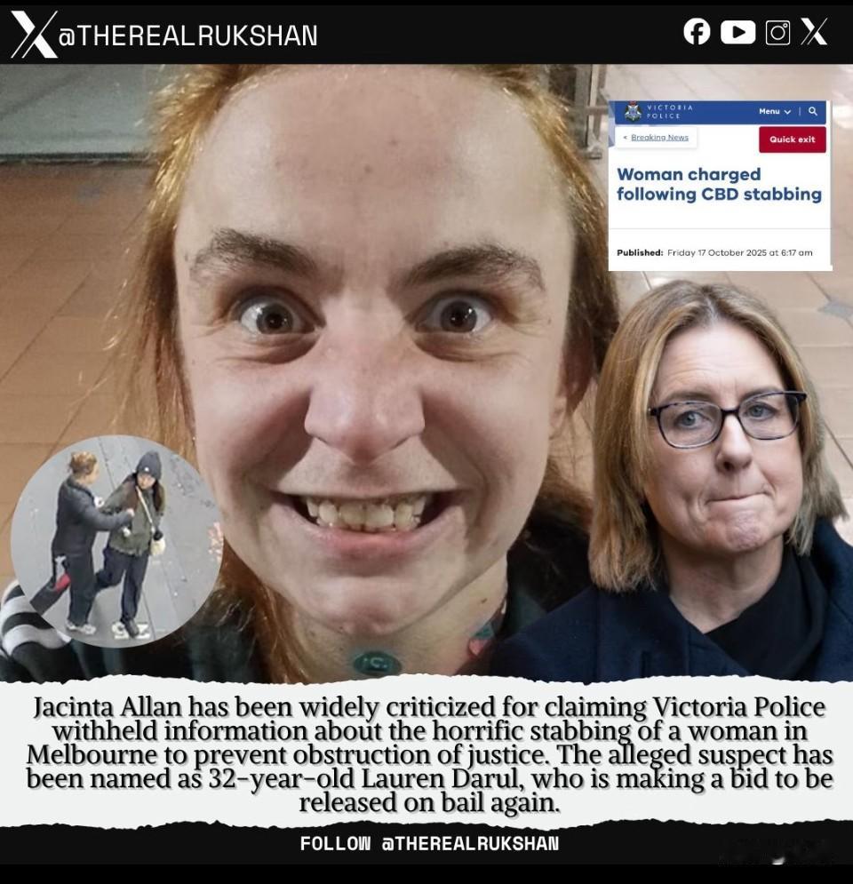 墨尔本 随机捅人事件! 有人说嫌疑人是一名变性的精神病患者!感觉她正常得很,sha人先看脸才下手![石化]而且她不止一次犯罪 应该送她去阿伦州长家门口,让州长用爱与关怀来感化她。[石化] 据说这个人是女变男,变着变着发现这是并不是时髦而且痛苦,又后悔了,现在正在男变女,又要变回来。[石化]外国人案件