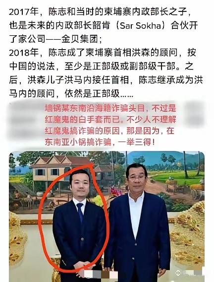 柬埔寨太子集团陈志不过是某些人的白手套,和柬埔寨政府高官联合开公司,还是政府高级