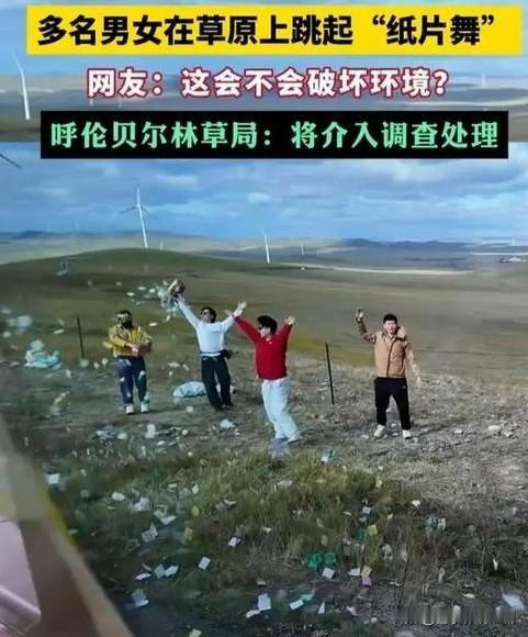 多人在草原抛撒纸片,林草局紧急介入 近日,多名男女在呼伦贝尔大草原抛撒纸片拍视