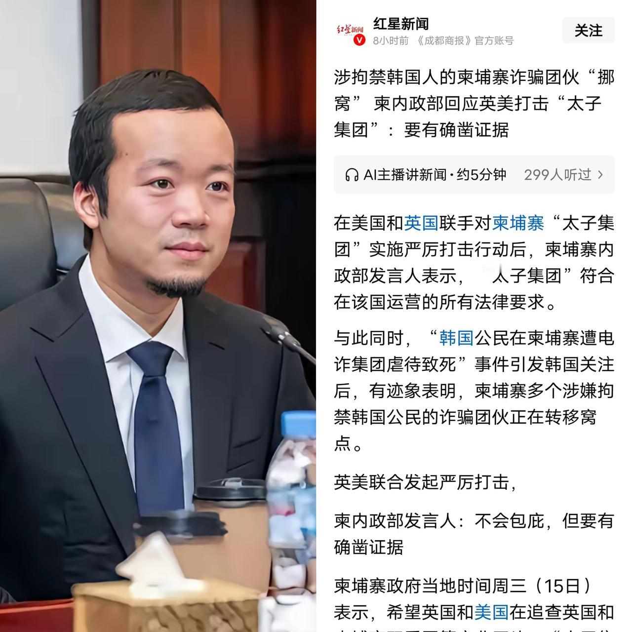 英美联手端了柬埔寨太子集团的窝,罚没150亿美元比特币,全世界都在叫好,柬埔寨内政部的回应却让人看懵了——张口就要“确凿证据”。 这话说得也太讽刺了!受害者被关在电诈园区每天干18小时,完不成任务就遭电击,甚至有韩国公民被虐致死,这些活生生的人和事不是证据?集团老板陈志自己都吹嘘每天骗3000万,这还不够实锤? 说白了,所谓“要证据”更像托词。太子集团在柬埔寨开了10个电诈园区,老板还能当公爵、做政要顾问,早跟当地盘根错节了。现在团伙忙着搬设备转移窝点,柬埔寨这边却慢悠悠讲“法律”,明摆着不想真动手。 打击电诈从来不是看谁说漂亮话,而是看保不保百姓安全。你们觉得这种“要证据”的说法,到底是真讲法还是另有心思?