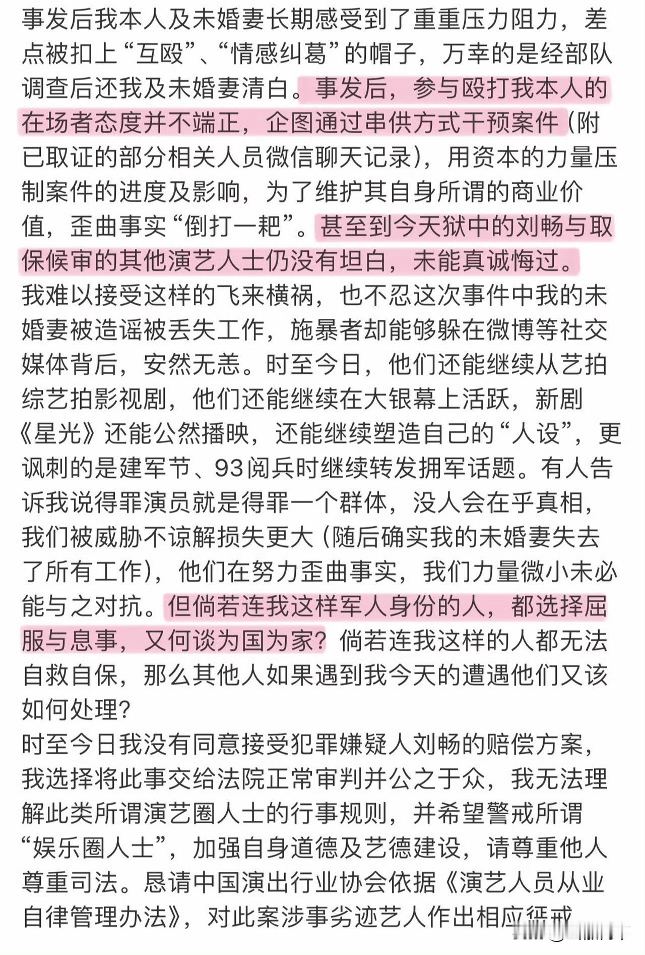刘奕畅和吴崇轩这两个十八线小演员厉害了,居然敢殴打军人,受害人报警后还不知悔改,企图通过串供方式干预案件,企图用资本的力量压制案件的进度及影响,最后靠部队调查才得还清白,娱乐圈果然人人都是权贵啊! 搞笑的是现在刘奕畅已经在看守所了,他和他女朋友李沐宸的新剧还在播,就这样的人品为什么还给他们出镜的机会,直接封杀吧,现在是个十八线小演员就这么嚣张了,以后要是混好了还得了。 之前刘奕畅上《无限超越班》的时候,很多人就不喜欢他,各种作,现在好了终于把自己作进去了[笑哭][笑哭][笑哭]