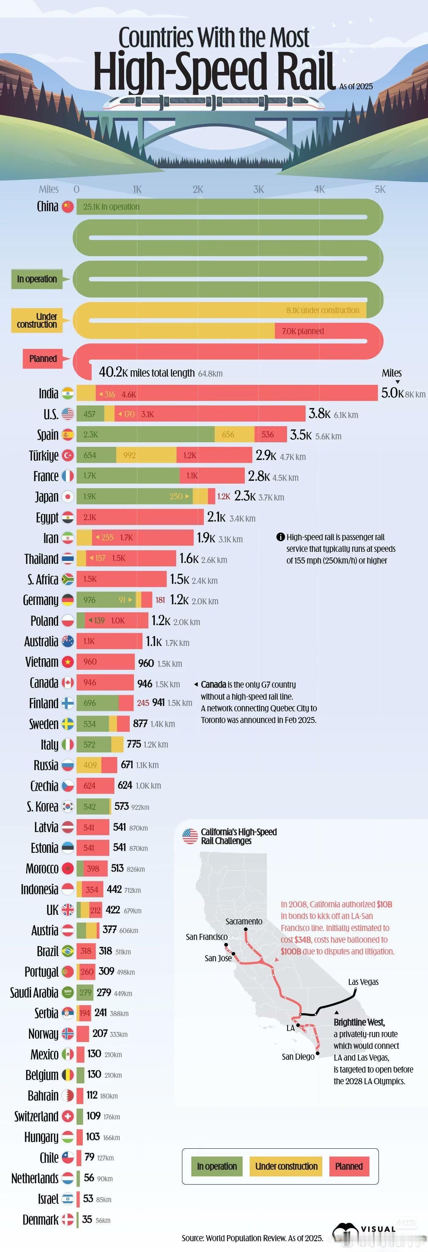 不看不知道,中国的高铁里程数,真的是遥遥领先世界第一。