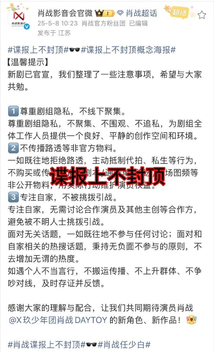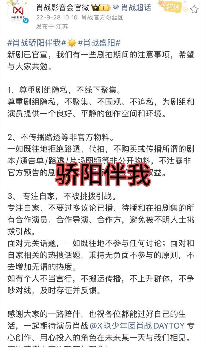 肖战粉丝一直有在进行的拍摄期间温馨提示,正确引导粉丝