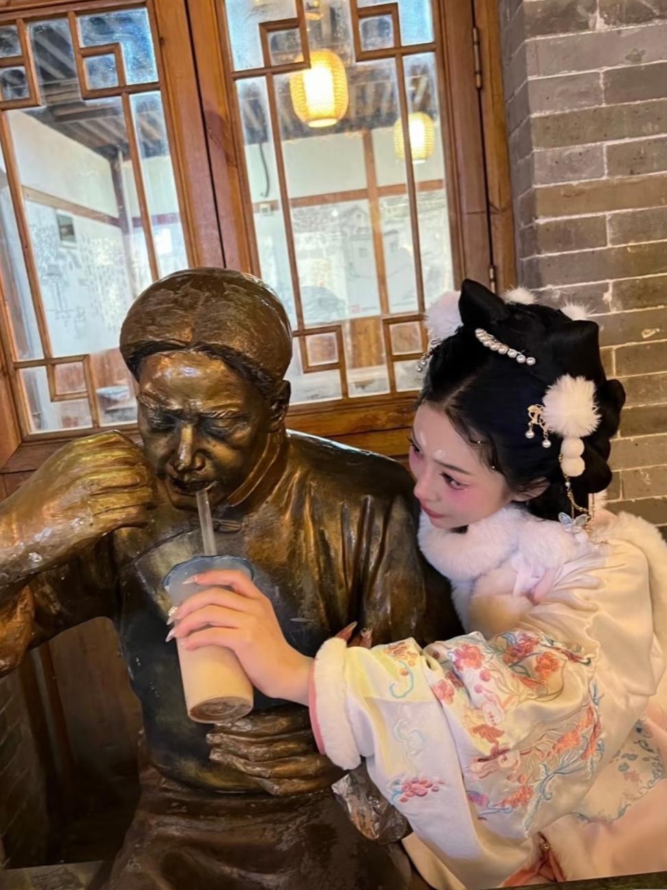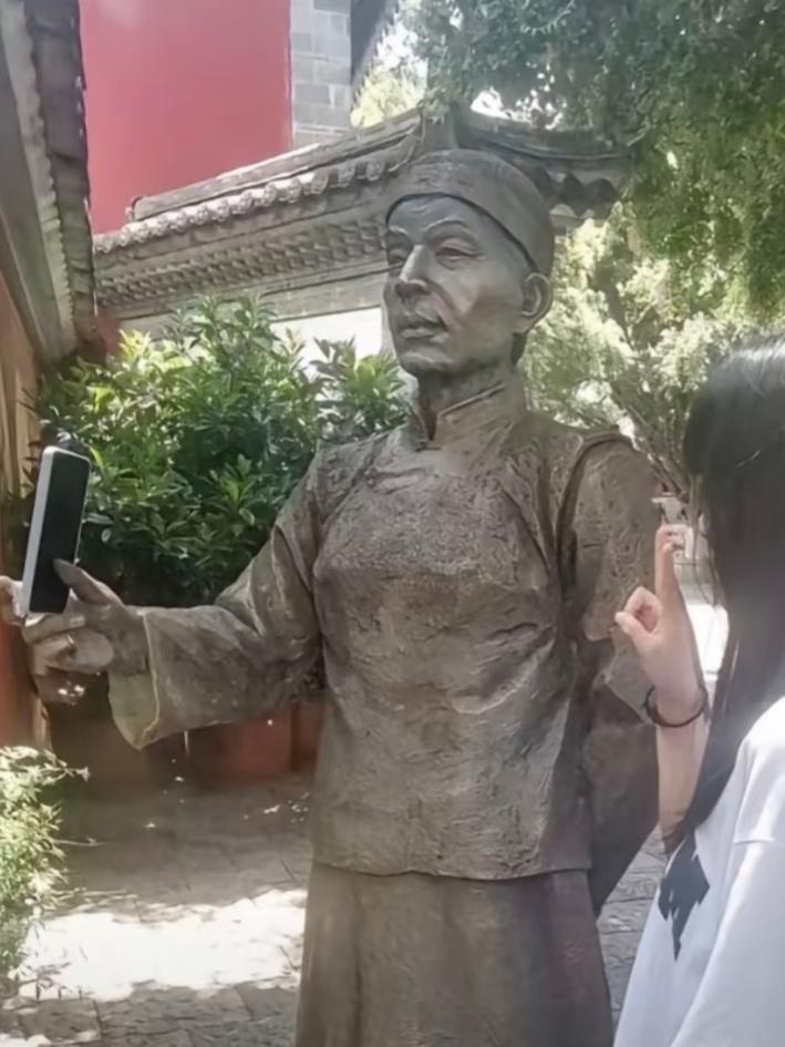 今日所见所闻外出游玩跟雕像的各种奇葩互动方式
