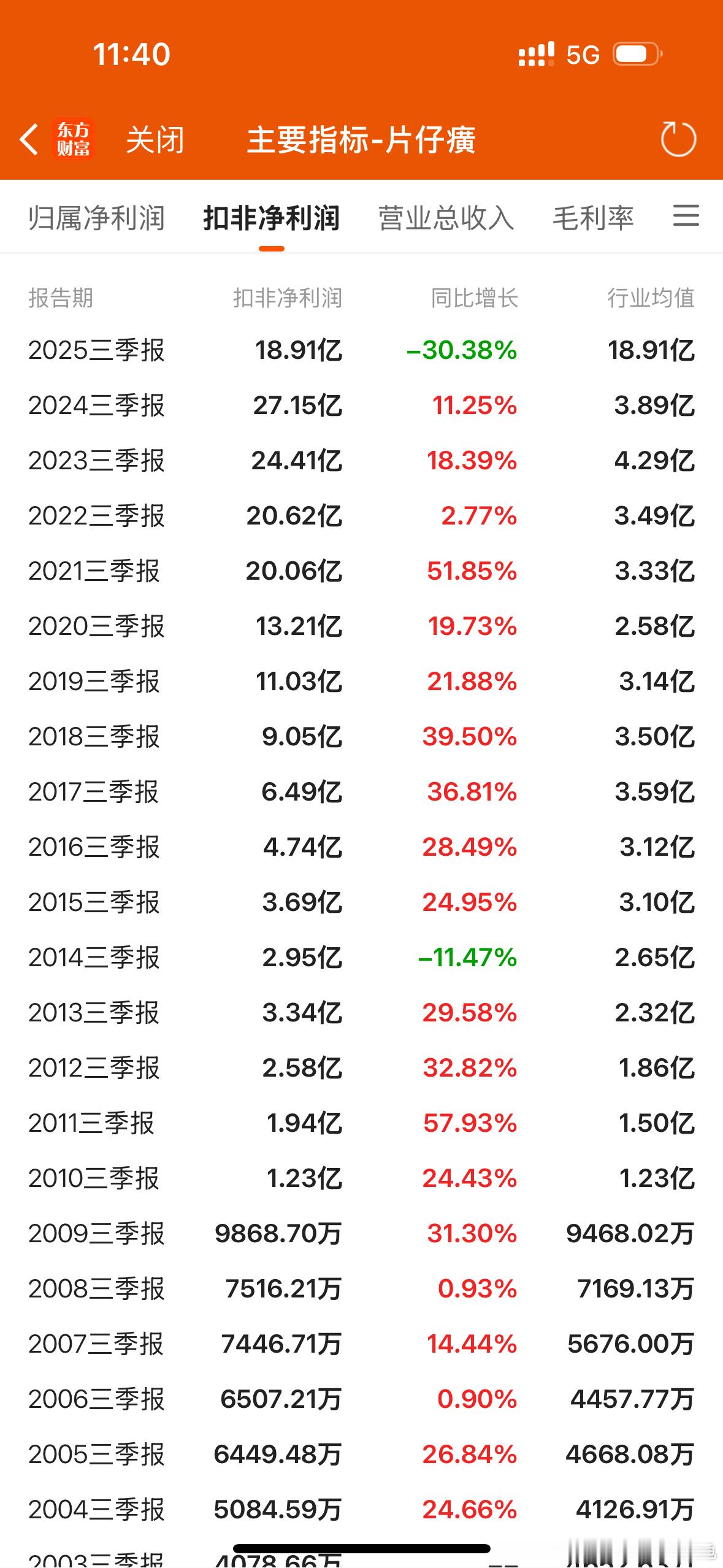 片仔癀净利润永远都是赚钱的,三季报扣非18亿,和2020年相比,也不差。没亏钱,面对短期增速放缓,只有三个字“活下去”。片仔癀[超话] 就是要这样如实报道,不要死要面子,搞每年固定增速,压货给经销商。市场卖不动集团就自己就存起来,现在主动摆烂,今年把数据放下来了,等市场库存出清,真实需求才能把指导价维持住(760),这样明年零售价和预期就会好看多了。