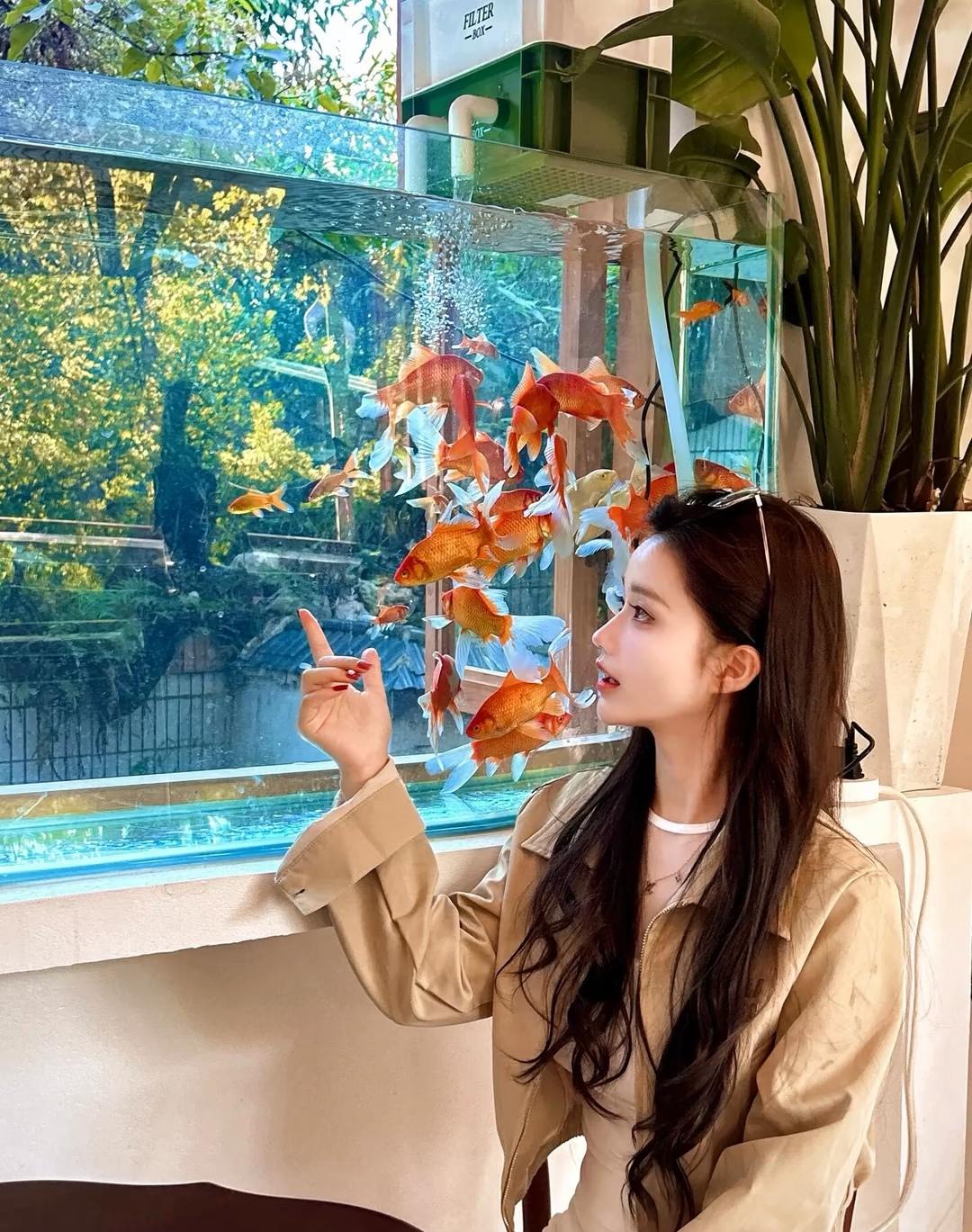 在咖啡馆里,与锦鲤亲密接触的美好时光
