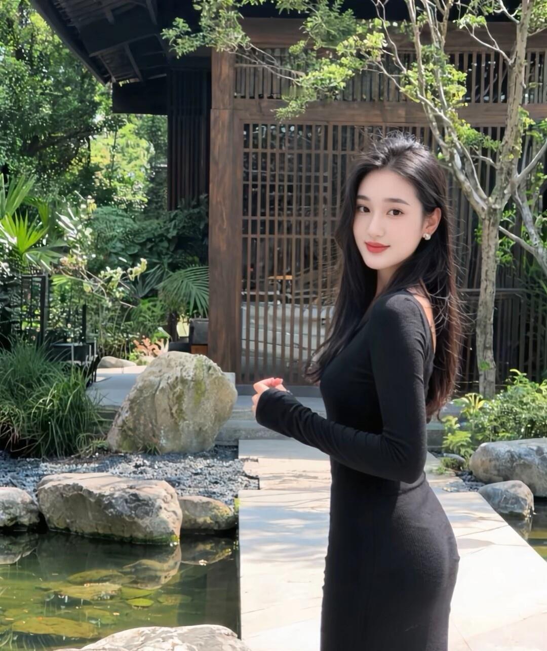 古风庭院中的优雅女子,静谧时光的美好瞬间。