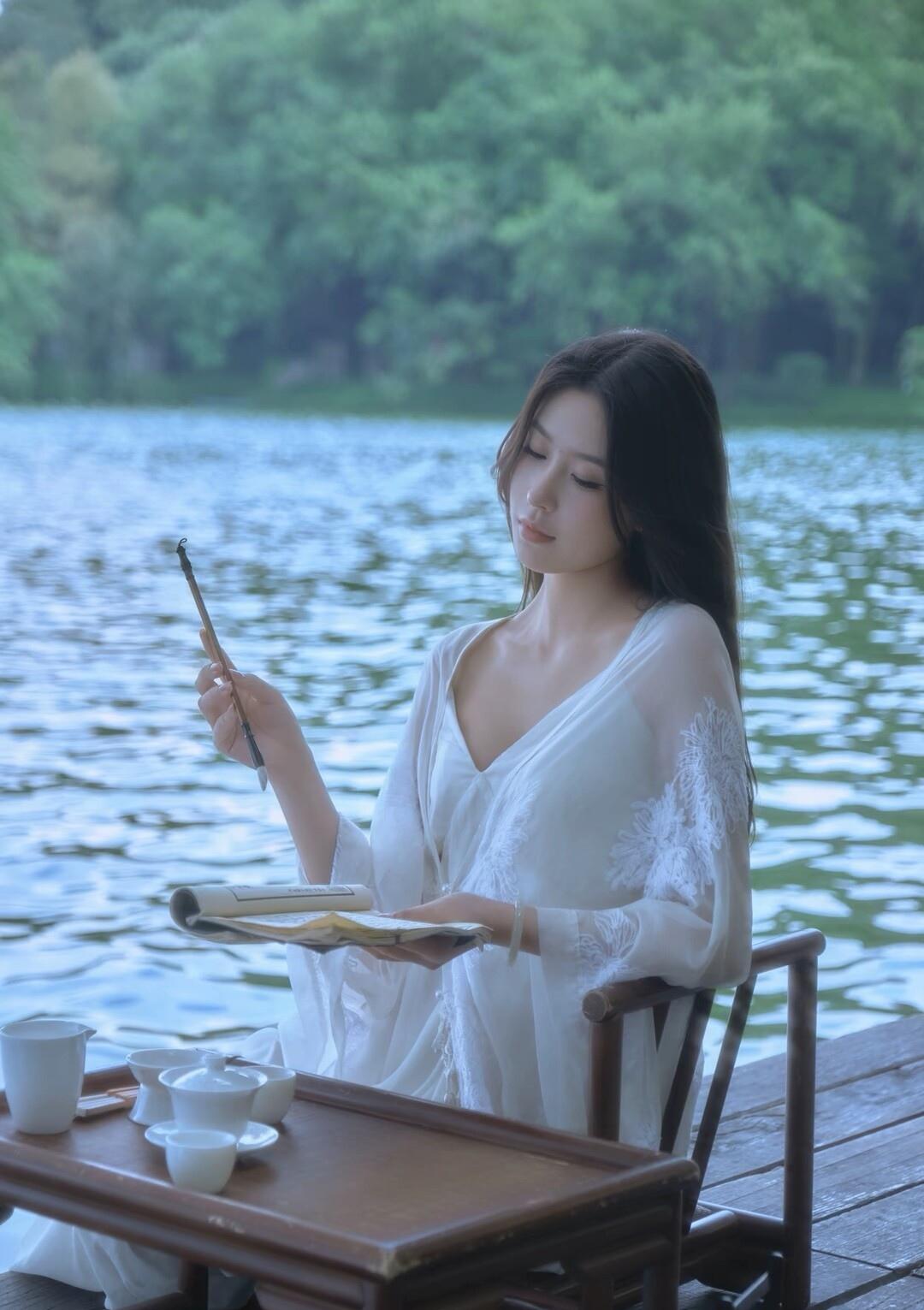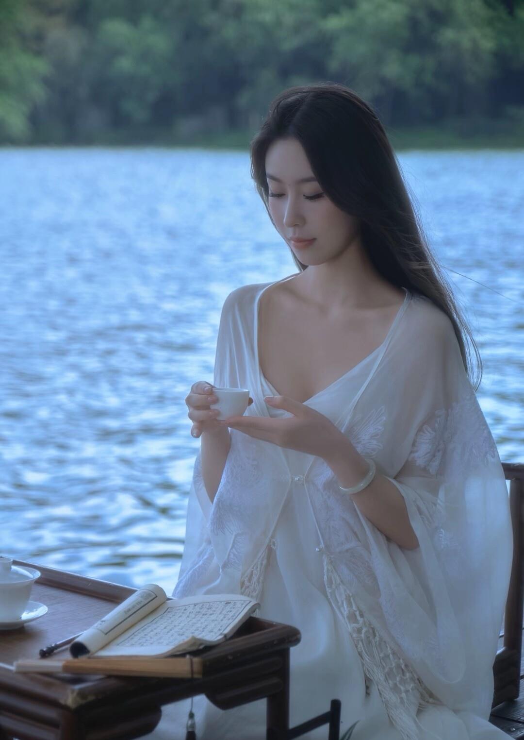 在湖畔静坐,品茗赏书,享受宁静时光。