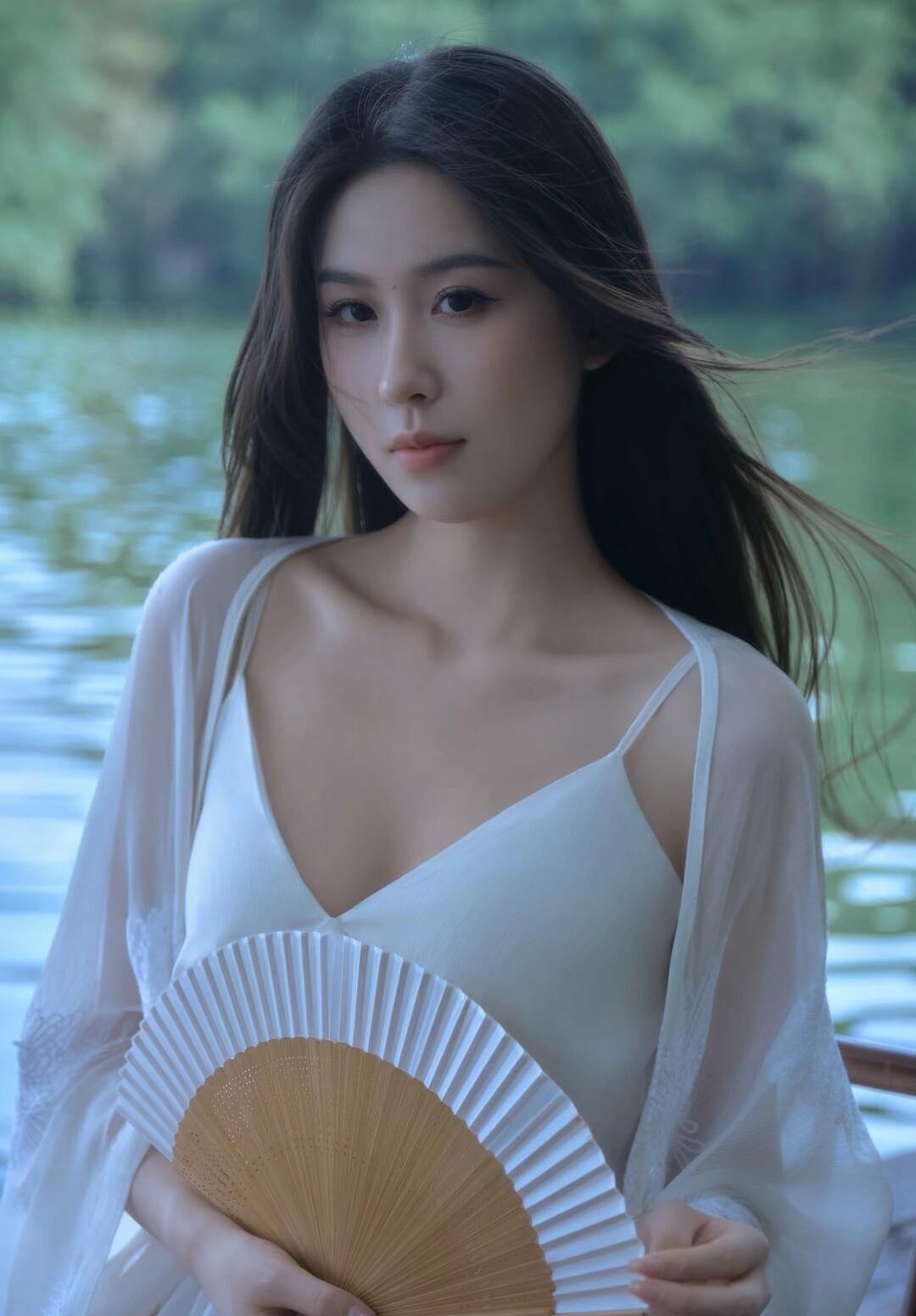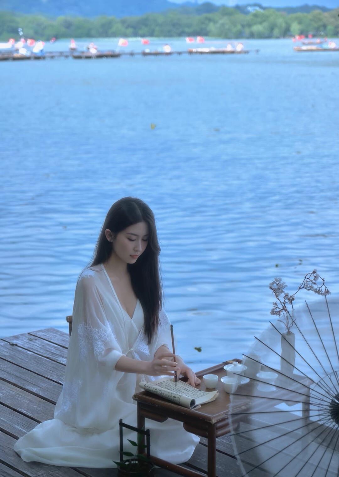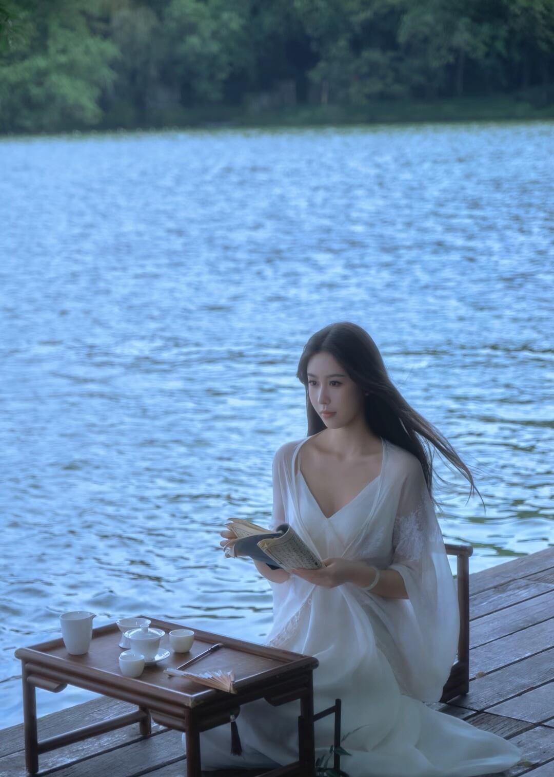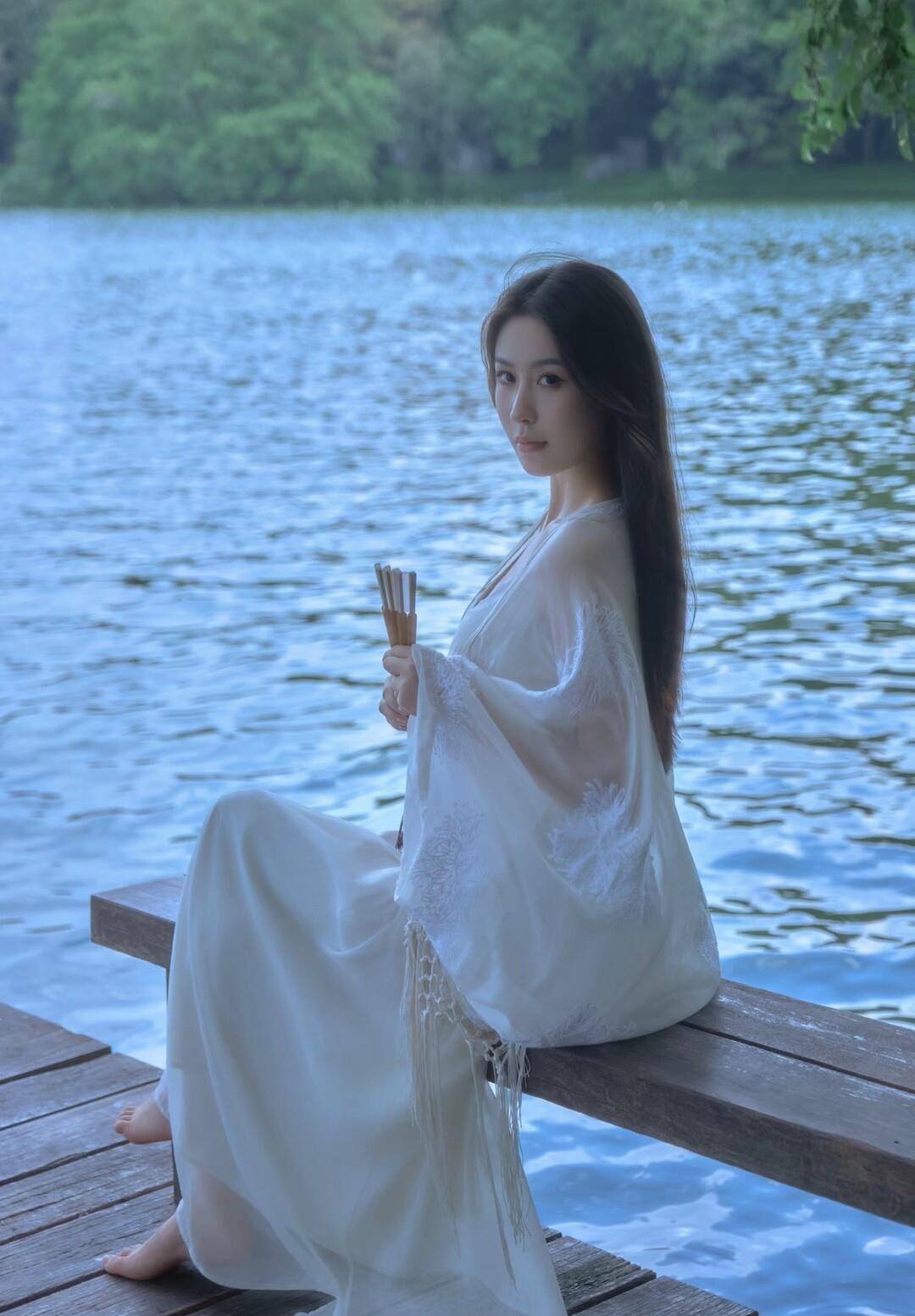 湖畔倩影:秋日氛围感穿搭密码!原来穿搭也能成为一道动人的风景!她身着一件白色