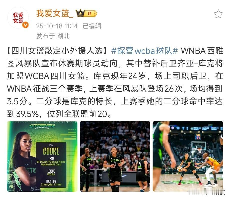 看来今年四川女篮也开始理性选择外援了! 根据“我爱女篮”博主发声:四川女篮已经敲定了小外援的人选,她就是来自WNBA西雅图风暴队的替补后卫齐亚-库克。遥想上赛季四川女篮花重金一口气签下了坎贝奇和琼斯2位大牌外援,那真是羡煞WCBA其她球队,没曾想总决赛竟然败给了东莞女篮,也是让人大跌眼镜。随着韩旭的离开,看来四川女篮新赛季也不再大把撒钱签大牌外援讲究排面了,也开始理性选择外援了。相信接下来四川女篮大外援的选择也会进一步在性价比和名气间进行衡量,合理取舍。但有一条是明确的,那就是不会再出现外援只打季后赛的情况。