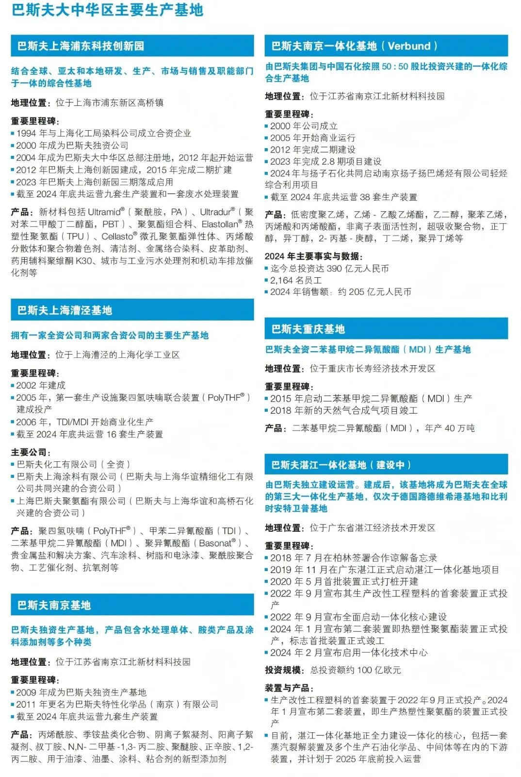 在德国企业“去中国实现产业现代化”的浪潮里,化工巨头巴斯夫是最为积极的那一拨,也因此吃到了最为丰美的果实。 中国化工品消费连续12年保持全球第一,中国化工市场占据全球近4成市场份额,是巴斯夫选择深耕中国最无法拒绝的理由。 深度本地化的巴斯夫中国 作为拥有159年历史的全球化工巨头,德国巴斯夫以分布在92个国家的235个生产基地,形成了覆盖基础化学品、材料、农业解决方案等六大板块的产业生态。2024年,巴斯夫全球销售额为653亿欧元(约合5000亿元人民币),以全产业链优势在多个化工细分领域占据头部位置。 中国市场是巴斯夫全球战略的重要支撑点,贡献了其13%左右的全球总营收占比,稳居海外市场第一,与欧洲、北美构成三大战略支点。 截至2024年,巴斯夫在华累计投资超过130亿欧元,与合作伙伴的共同投资达170亿欧元,相当于将一半左右的年度销售额都投到了中国市场。 巴斯夫所得到的,则是深度本地化的生产、运营网络,已建成27家全资子公司、11家合资企业和28个销售办事处,1.27万名中国员工构成了其海外最大的本地化团队。 灵活的运营模式也让巴斯夫可以全力发挥,比如扬子石化-巴斯夫的合资装置、湛江一体化基地的独立运营,合资还是独资任选,巴斯夫能够轻松平衡风险与收益。 从生产基地到创新枢纽,是巴斯夫对于中国市场的诚意回报。湛江一体化基地总投资100亿欧元,目前距离全面投产的目标仅有一步之遥。该基地于2024年启用的一体化技术中心可实现从工艺研发到质量控制的全链条技术转化,是巴斯夫在亚太地区的技术输出窗口。此外,还有按高环保标准推进的南京基地先进助剂装置扩建工程,惠州大亚湾基地启用的第二条聚合物分散体生产线,上海创新园仅2024年就新增的12项绿色化工专利。 中国推进“双碳”目标建设,巴斯夫在深度理解的基础上予以积极响应。如东基地通过可再生能源改造实现二氧化碳零排放,上海汽车原厂漆基地100%使用可再生电力,生产的低碳涂料供应特斯拉、比亚迪等车企。 既是“鲶鱼”,也是“老师” 作为外来者,即便是全球领先的化工巨头,巴斯夫同样面临本土企业的巨大竞争压力,巴斯夫选择依托与中国企业的合作实现增长,形成独特的竞合生态。 面对以万华化学、恒力石化等为代表的本土力量,巴斯夫更多采取差异化竞争策略,在核心业务板块,如化学品、材料等方面,强化一体化生产优势;在自主业务板块,如涂料、电池材料等方面,则是寻求灵活转型,其出售汽车涂料业务就是典例。巴斯夫第一时间表示,此举并非撤离中国市场,反而会将回笼资金继续投入到电池材料、低碳化学品等中国市场的高增长领域。 巴斯夫在中国的合作布局越来越有“中国智慧”。今年4月,巴斯夫与明阳集团签约,协力推进绿色氢氨醇的规模化应用。在航运脱碳领域,巴斯夫的OASE®blue碳捕集技术已被中船动力采用。“技术输出+本地化适配”模式,让巴斯夫在高端市场保持了一定的优势。巴斯夫甚至游刃有余地玩起了跨界,与李宁合作开发全TPU可回收概念鞋。 反对的声音反而来自德国国内,德国业界以复杂的心态看待巴斯夫在中国的不断加码投资建设,表示将保持“谨慎乐观”。德国方面既夸赞巴斯夫的中国战略为欧洲化工企业提供了全球化范本,又煞有介事地表示担忧技术外溢的风险。而巴斯夫一门心思地只想通过“技术中心+本地化生产”的闭环,在合规前提下实现技术保护与市场拓展的平衡。 在巴斯夫看来,中国不仅是最好的销售市场,更是其全球战略的创新策源地和转型试验场。而巴斯夫所带来的低碳产品、循环技术、跨界合作等新价值,对于中国企业而言,其存在既是“鲶鱼”也是“老师”。