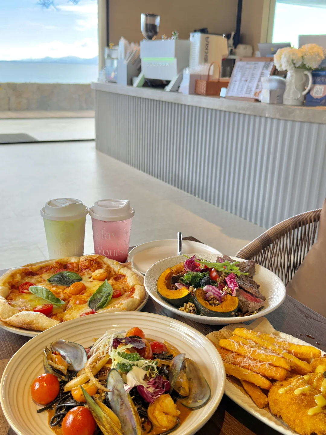 我可以在这里呆上一天!!! 碰上好天气,随便哪个角落都很出片,真的超绝!!! 还能看到落日,下面还有沙滩,踩踩水什么的也很好玩~~ 这家是住宿吃食一体的,独栋,很大,吃的也很绝!!分量还很大,二人餐三个女生吃的吃不完~~ 去深圳的姐妹们冲冲冲!!