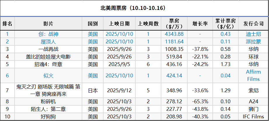 1.《创:战神》开画夺冠,全球票房7000万美元;