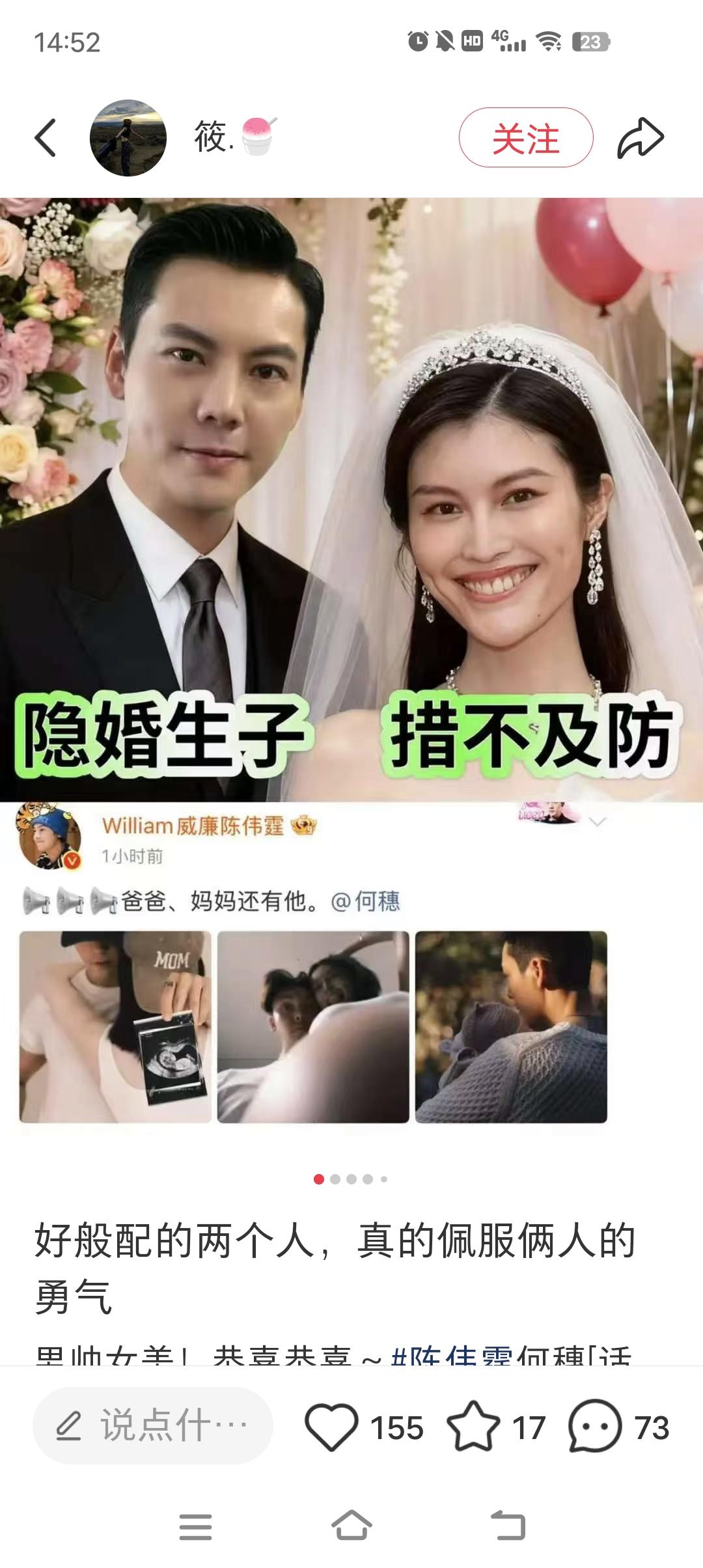 怪说不得陈伟霆和赵露思 在剧里毫无cp感 原来他早已和何穗结婚生子 刚被陈伟霆何穗直接晒娃官宣炸懵了,这操作也太狠了吧?跳过恋爱承认、跳过婚讯官宣,直接甩出自带“DAD”“MOM”帽子的一家三口合照,配文就仨字“爸爸、妈妈还有他”。现在回头看才发现全是伏笔,21年就被拍同回住处当“健身房情侣”,中间还闹过分手传闻,结果人家闷声复合、隐婚待产,连何穗停更半年、推掉顶级时尚资源都是为了生孩子。 这哪是明星谈恋爱,分明是把私生活捂成了悬疑剧!真正的偏爱从来不是戏里炒CP,而是像陈伟霆这样,把所有低调和保护都给了现实里的家人。 不得不说内娱这下算被他们玩明白了,用最直接的方式守护隐私。你们觉得这种“跳过流程”的官宣,是不是比天天炒作更让人觉得真诚?