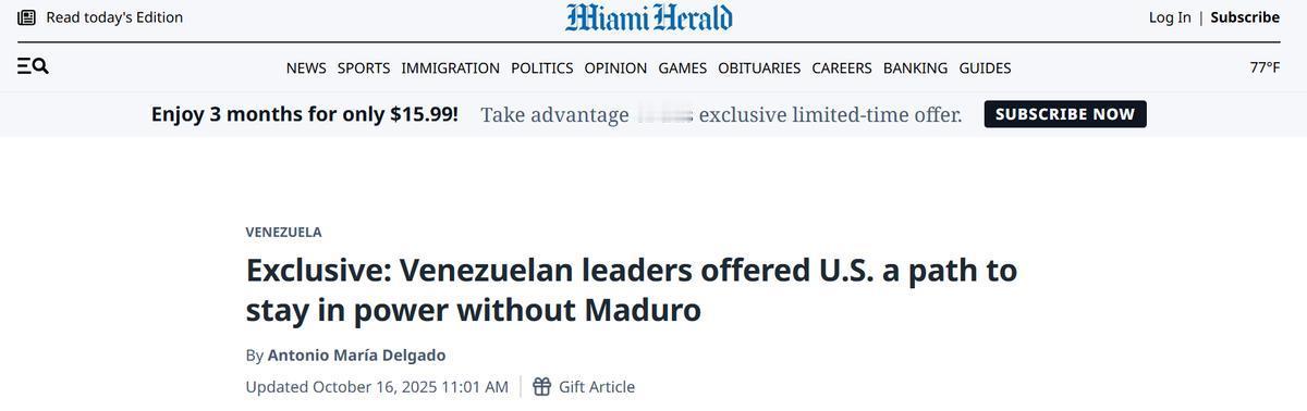 美媒:马杜罗送来两封投降信,特朗普都拒绝,现在美军只剩开战一条路! 美军超过1万名士兵已经完成在加勒比海的部署,轰炸机开始频繁靠近委内瑞拉活动,美军侦察机和无人机也开始加大委内瑞拉附近海空域的侦察力度。给人的感觉就是美军真的要打了。就在局势最为紧张的时刻,美国媒体传出消息称,实际上在美国压力下马杜罗已经做好了下台准备,并且向美国递交了响应方案,只是特朗普没有接受相应方案。 美媒透露消息称,马杜罗送来了2封投降信,第一封信主要意思是,马杜罗同意下台,但是要求美国撤销对他的所有指控,并且允许他继续在委内瑞拉生活。按照马杜罗的要求,马杜罗的副手,也就是现任副总统德尔西·罗德里格斯担任总统。如果这个计划能被美国接受,那么马杜罗就将辞去总统,从而以自己的个人权力换取委内瑞拉和平稳定。这一封信是在4月份发出的。 第二封信是,马杜罗放弃继续留在委内瑞拉,而是流亡土耳其、卡塔尔等对他比较友好的国家。并且这个方案中,马杜罗不再坚持让自己的副手担任总统,而是选择流亡西班牙的退役将领托雷斯回国担任总统,与罗德里格斯等人一同执掌委内瑞拉大权。这个方案中,会吸收一些反政府流亡人士进入政府圈,但主要是一些中性人士,而非绝对的亲西方派。 这个方案显然是马杜罗最大的让步,宁愿用自己的流亡换取委内瑞拉的和平安宁。不过马杜罗在这个方案中选择中间路线人士进入政府,而拒绝极端的亲西方力量。马杜罗之所以保留这个底线要求,就是为了避免亲西方力量把委内瑞拉彻底搞乱。可是,特朗普对于马杜罗提出的这2个方案都不满意,都选择了拒绝。 特朗普的意中人是新一届诺贝尔和平奖得主、主要反对派领导人马查多担任委内瑞拉总统。马查多之所以能得到和平奖,主要是因为他绝对的亲西方立场。马杜罗拒绝马查多担任委内瑞拉总统就是因为,害怕绝对的亲西方力量担任总统,将导致委内瑞拉彻底失去自主权,彻底陷入混乱。特朗普想要马杜罗接受他的想要方案,但是马杜罗已经做出了巨大让步,下一步很难再有新的大让步。 现在的局面看,马杜罗已经不可能再有让步,而美国想要达成推翻马杜罗的目的只剩下发动战争一条路可走。美军的军事实力不存在问题,但是对于特朗普而言发动战争很容易,但如何收场却是很困难的事情。特朗普也担心一旦开战,如果陷入战争泥潭之中,那么如今的美国就会被拖垮,这是他最担心的事情。当然,关于马杜罗2封投降信的消息也是美国媒体传出来的,至于是否真实,目前还没有得到更多验证。
