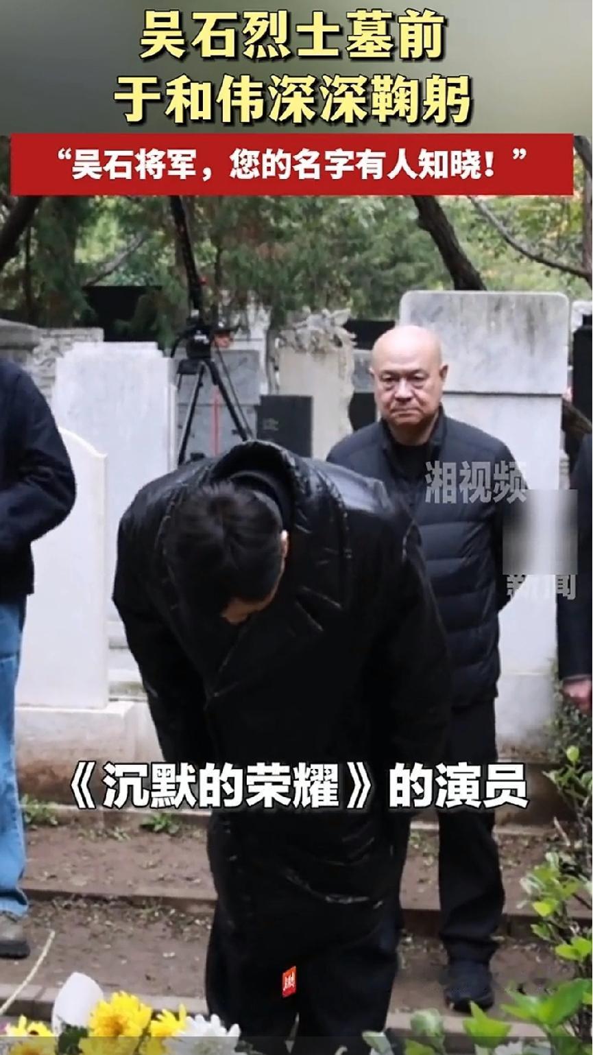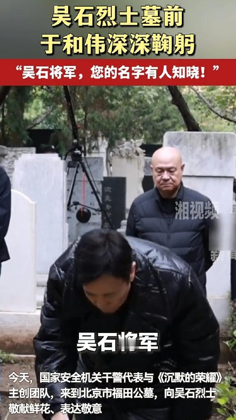 致敬先辈!《沉默的荣耀》的主演于和伟来到吴石烈士墓前献上一枝鲜花、并鞠躬致敬!他说:“吴石将军,您的名字有人知晓!” 让我们向当年在隐蔽战线为了国家和民族默默奉献、死而后已的英雄们致敬!