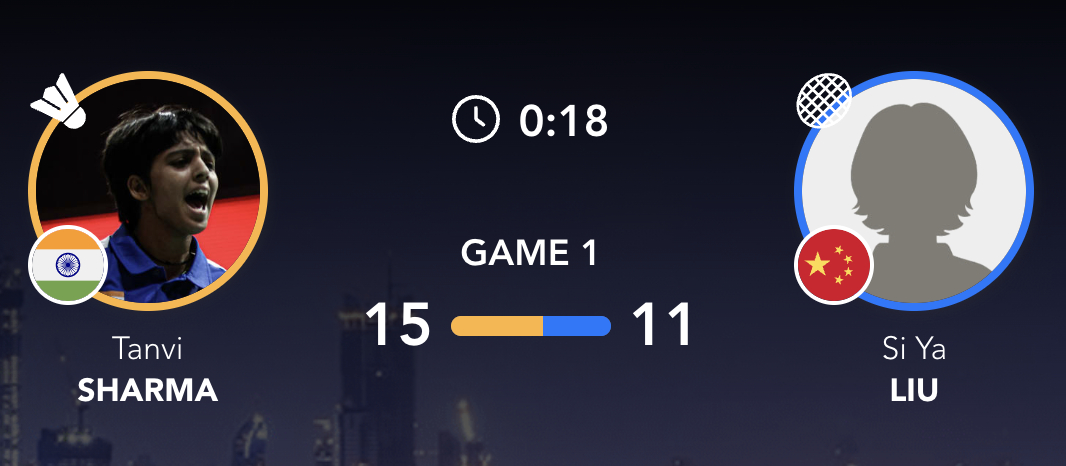 刘思雅🇨🇳 11-15、9-15 🇮🇳夏尔马