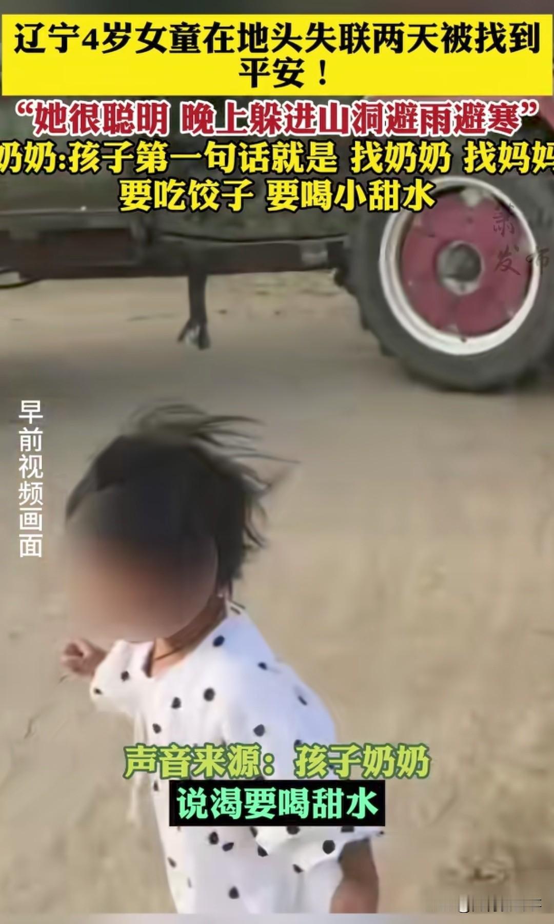辽宁4岁女童失联44小时获救!更让人破防的是家属和孩子的话… 10月15日,建平4岁女童小丁一在田间面包车里睡着后失踪——爷爷奶奶在200米外干活,回头时车窗开着、孩子没了踪影。奶奶当场痛哭:“孩子是我命根子,愿倾家荡产换她回来”,远在贵州的妈妈赶回来时崩溃呢喃:“说好过年就接她来贵阳,幼儿园都找好了”。万幸1.2万救援人员昼夜搜寻,最终在 山沟草窝找到蜷缩的孩子,她体温偏低却意识清醒。孩子妈妈哽咽发声:“谢谢政府和好心人,是你们给了孩子第二次生命” ,而小丁一吃着糖轻声说:“我要好好学习,做个像你们一样的好人”。 带娃外出必记2个安全原则:1. 绝对不能单独留孩子在车内,哪怕车窗开着;2. 提前教低龄娃背家长电话+记住“找穿制服的人求助”,关键时能救命。 你带娃外出时,敢把孩子单独留在视线外哪怕几分钟吗?评论区说说你的底线! 辽宁4岁失踪女童家属发声 家长必看的育儿安全 儿童防走失指南 关注我等更新,帮家长筑牢安全防线!