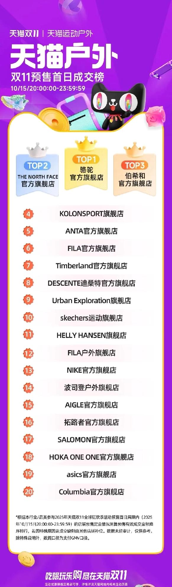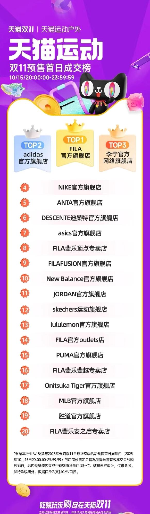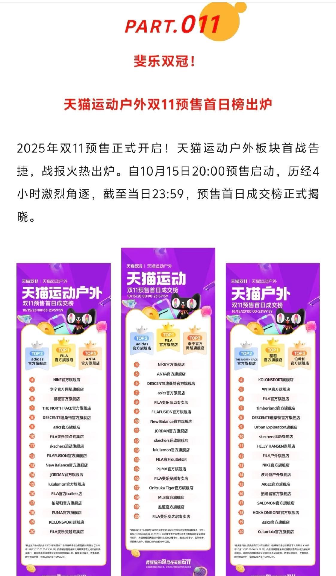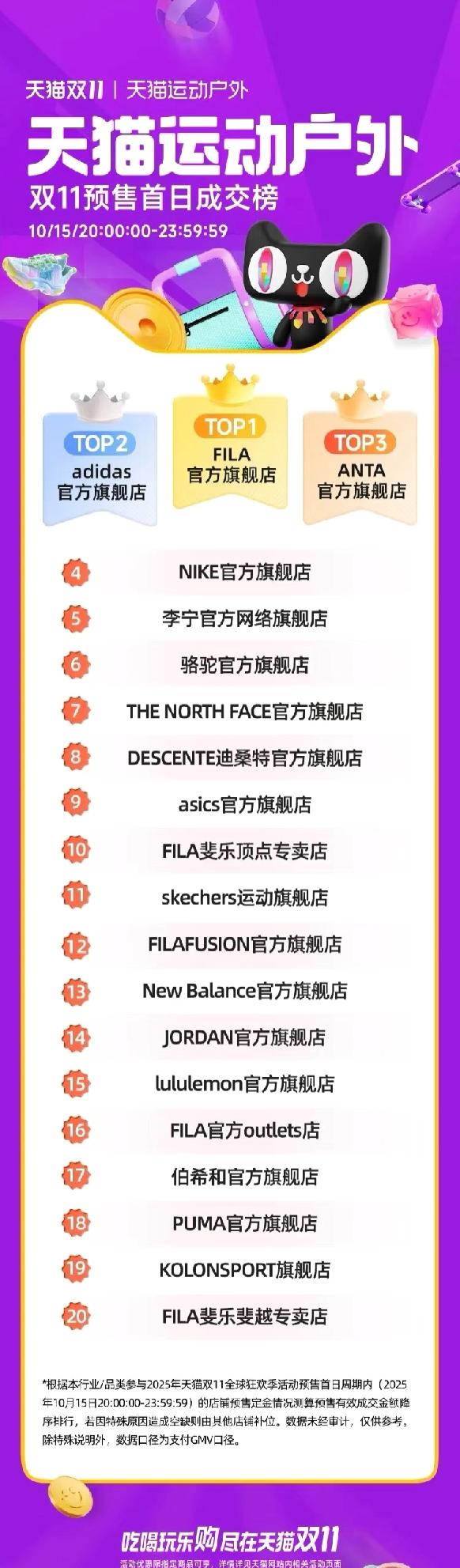 Nike全面掉队了? 天猫运动户外双11预售首日榜出炉! 10月15日20:00预售启动,截至当日23:59,预售首日成交榜正式揭晓,今年是不是不太一样?