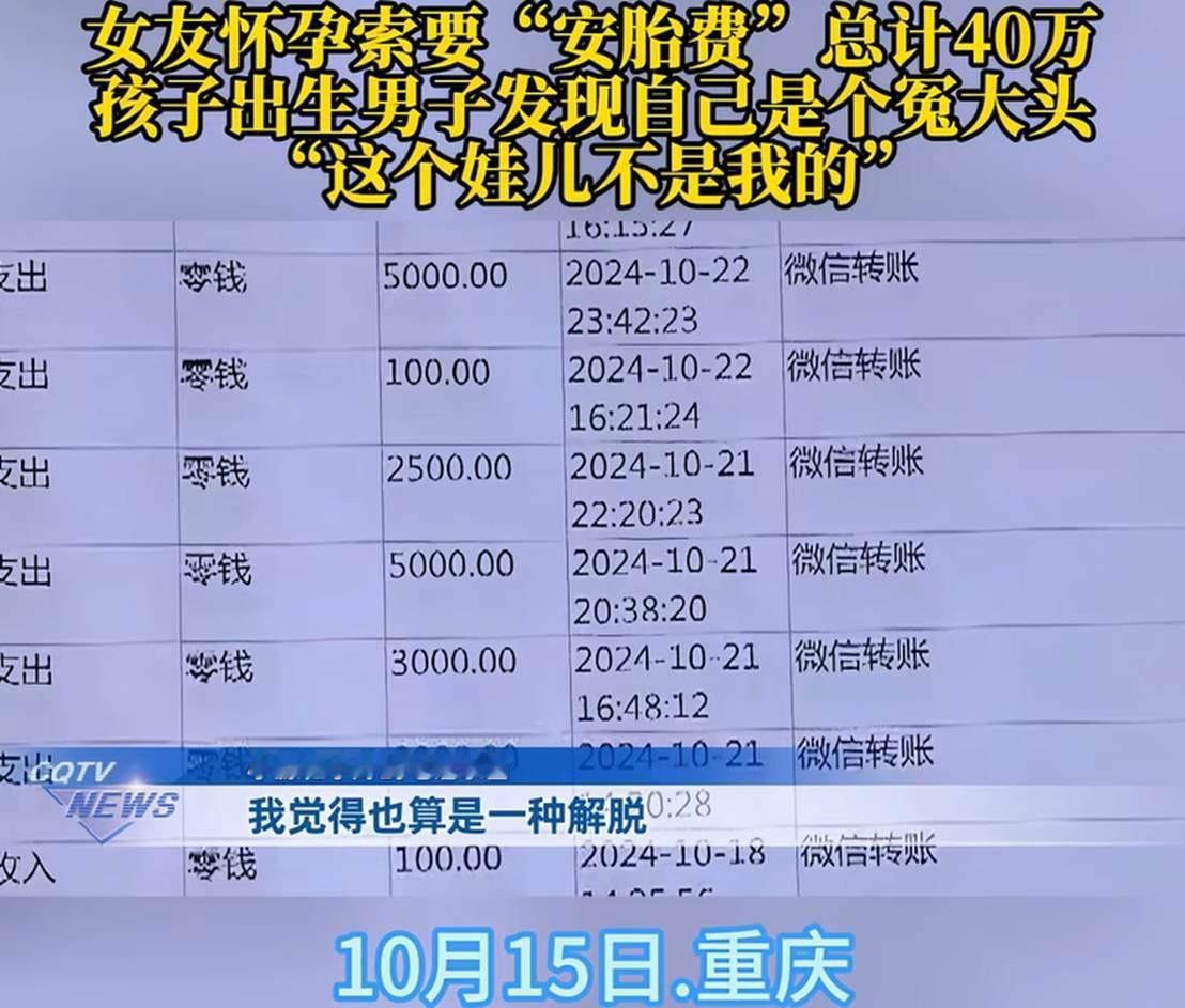 重庆,男子和女子相识后,两人一起在酒店住了几天,男子就去了外地上班,女子告诉他,自己怀孕了,孩子是男子的。男子高兴不已,陆陆续续给对方转了40多万保胎费,可最后女子告诉他,胎心停了,孩子没了,男子很难过,跟对方断了联系。可事后他越想越觉得不对劲,查看女子发给他的孕检单,还真的发现了蹊跷,顺藤摸瓜,结果发现孩子不是他的,而是另外一个男子的,并且他们一家三口还拍了视频,男子崩溃。 “我怀了你的孩子。”收到这条微信时,小源(化名)正在西藏的工地上盯着图纸。这是2024年春天,他刚结识重庆女孩小婷(化名)不久。 时间回到2023年底,小源第一次见到小婷,就对她印象很好,过年期间,他们在一家酒店共同度过了几天甜蜜时光,之后小源便按计划前往西藏工作。 距离让感情变得微妙,但小婷传来的“喜讯”瞬间拉近了两人的距离。孕检单照片上,小婷的名字和“早孕”字样清晰可见。即将为人父的喜悦冲昏了小源的头脑,他毫不犹豫地开始转账。 第一笔是4000元“流产手术费”,小婷曾短暂地说孩子可能保不住,但随后又改口说“孩子很坚强”。从此,“保胎”成了她索要金钱的理由,而远在千里之外的小源,只能用不断转账来表达他的关心和责任感。 “今天要交住院押金。”、“医生开了进口保胎药,很贵。”、“需要买营养品,为了我们的孩子。”慢慢地,数字越来越大:5000、8000、10000……有时一天之内就转出多笔。这个从未亲眼见证的“孩子”,在短短几个月里竟然消耗了他40多万元的积蓄。 每当小源提出要回重庆探望,小婷总能找到合情合理的借口推脱:“医生说要静养,你不能来”、“我样子不好看,不想让你见到”…… 2024年11月,小源等来了最终消息:“胎心停了,孩子没了。” 电话那头的小婷声音哽咽,小源强忍悲痛,反而还安慰她。之后,两人心照不宣地减少了联系,这段关系似乎随着那个未曾谋面的“孩子”一同消失了。 时间来到2025年6月,当小源无意中查看跟小婷的聊天记录时,竟然发现之前发给他的很多检查照片都是网图,而其中一张图片上父亲一栏的电话号码,让他通过社交平台顺藤摸瓜,找到了对方的账号,却发现账号里满是其乐融融的“一家三口”视频,;小婷、一名陌生男子,还有一个小婴儿。 根据时间线显示,在她声称怀上小源孩子的时候,这个孩子已经出生;在她索要“保胎费”期间,她正与另一名男子共同抚育这个孩子。 最讽刺的是,那些以“保胎”为名索要的金钱,最终变成了这一家三口的日常开销、婴儿奶粉、甚至是一次次的家庭旅行。 当小源质问小婷时,她却反过来威胁要告他强奸。这种反击看似荒谬,实则精准地利用了男性的恐惧心理。然而,小源保留的聊天记录显示,小婷曾多次以亲密口吻谈论他们的 “第一次”,这些证据让她的指控不攻自破。 这场骗局之所以能持续数月,是因为小源陷在每一次转账后,他更加相信这个孩子的真实性,否则就意味着自己之前的付出都是愚蠢的。而小婷正是利用这种心理,让他越陷越深。 虽然律师指出,小源可以向小婷追讨损失,但对他来说,这不仅费时费力,更重要的是,这次经历已经让他开始怀疑自己判断人的能力…… 最后,只能说,在追求爱情的路上,保留一丝核实重要信息的意识,并非对感情的亵渎,而是对自己的负责,因为真正的感情,从来不怕接受事实的检验。 信源:重庆天天630 2025年10月15日 文│一阳 编辑│史叔