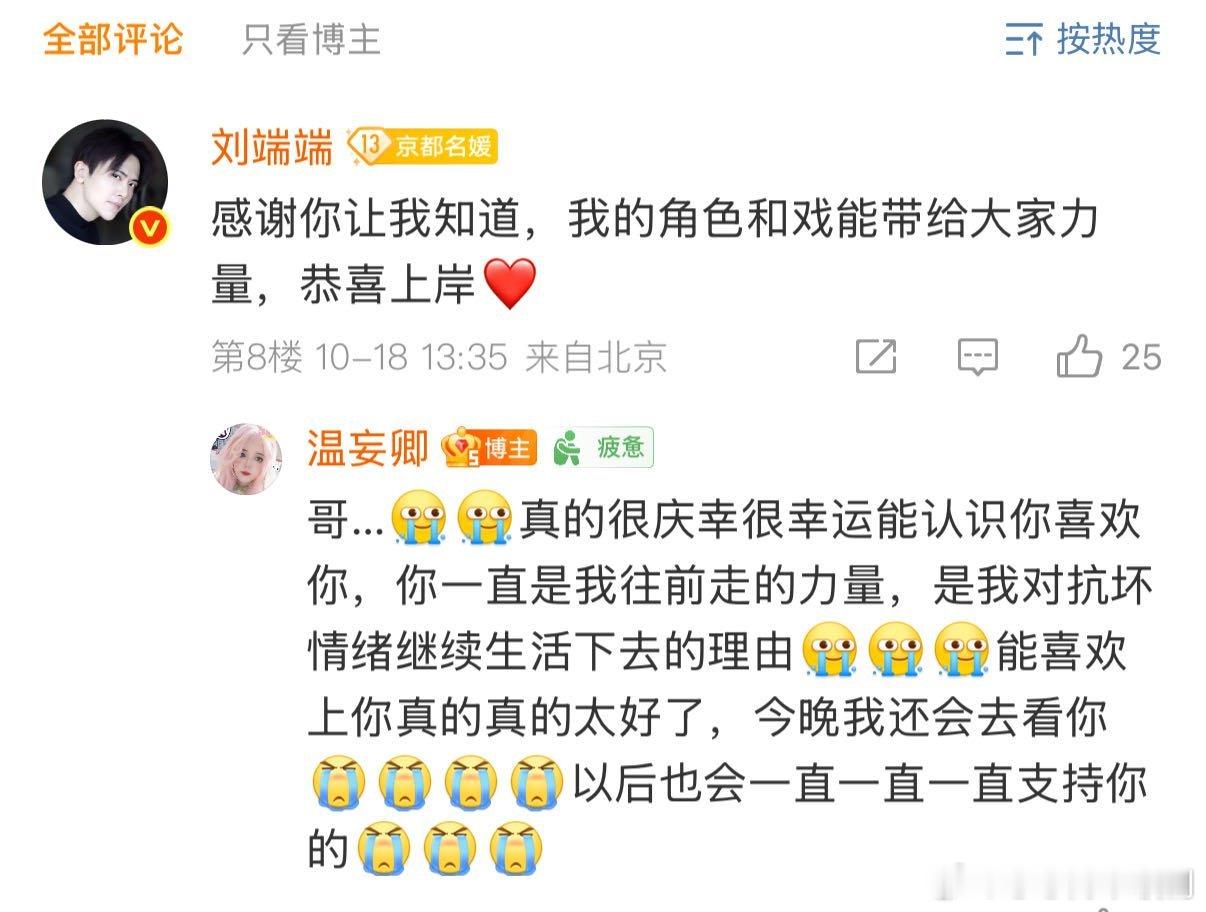 粉丝受刘端端鼓励考公上岸刘端端超棒!演《鼓楼那些事儿》时沉心琢磨角色传递力量,粉丝受其鼓励考公上岸,他也真诚回应这份双向鼓舞。