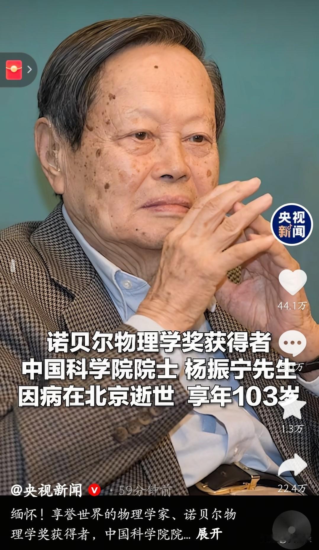 惊闻杨振宁先生逝世的消息,心里满是不舍。作为80后,我第一次知道他,是在中学物理课本上,那句“最早获得诺贝尔奖的中国人”,成了当年我们对科学顶礼膜拜的起点。 这位百岁巨匠的成就足以照亮整个物理学界:和李政道提出宇称不守恒理论拿下诺奖,与米尔斯创立的“杨-米尔斯规范场论”,更是和爱因斯坦相对论齐名的基础理论。他还发现了“杨-巴克斯特方程”,开辟了全新研究方向。 更让人敬佩的是他心系家国,牵头架起中美学术交流的桥梁,晚年扎根清华培育人才。先生虽去,但他的科学精神,永远刻在我们这代人的记忆里。