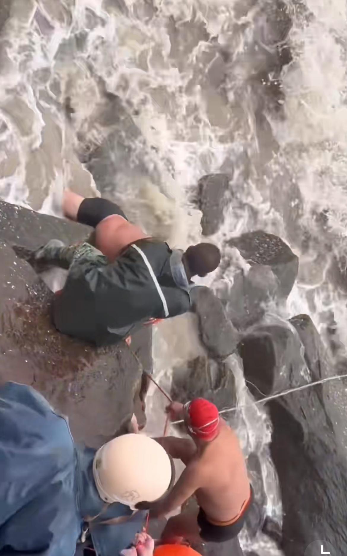 江苏连云港的救人英雄王玉平,今天早晨在涨潮的大海中勇救一人。当时海水气温才10度左右,见到有一个人意外落海,海里风高浪急,王玉平作为连云港港口职工,没有丝毫犹豫,下海救人,自己上岸时差点虚脱,身上多处被礁石擦伤,鲜血直流。被救上岸的男子连连向王玉平跪谢。南京救人小伙 舍身救人事迹