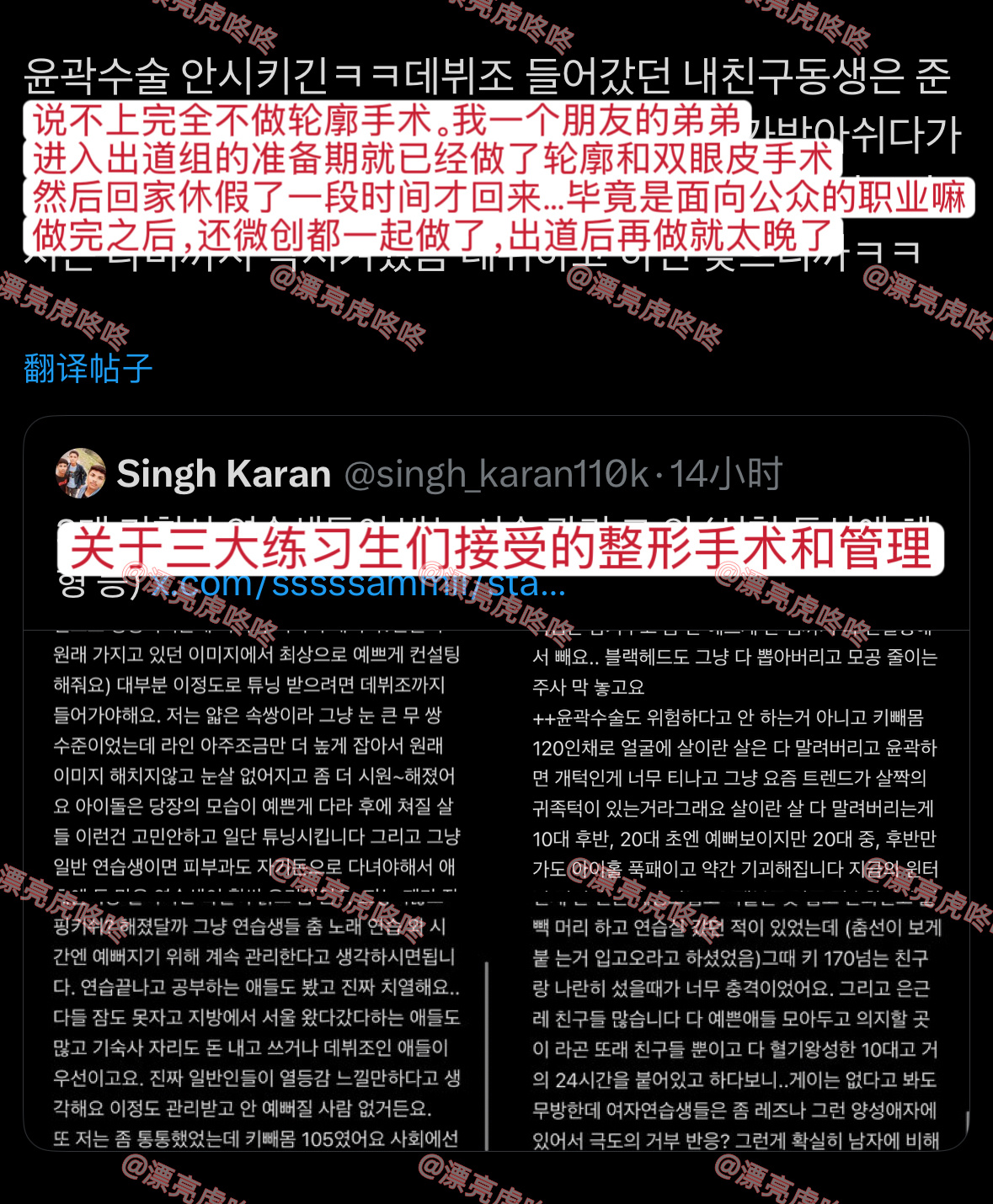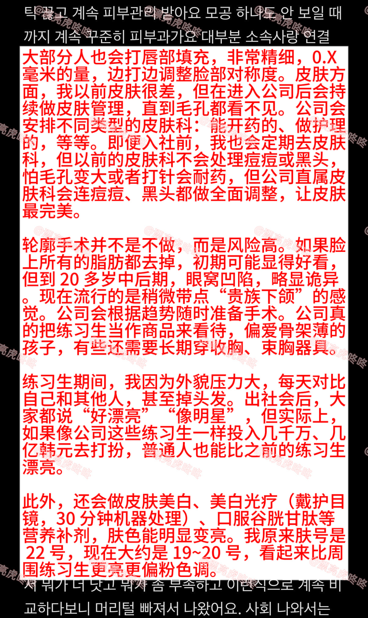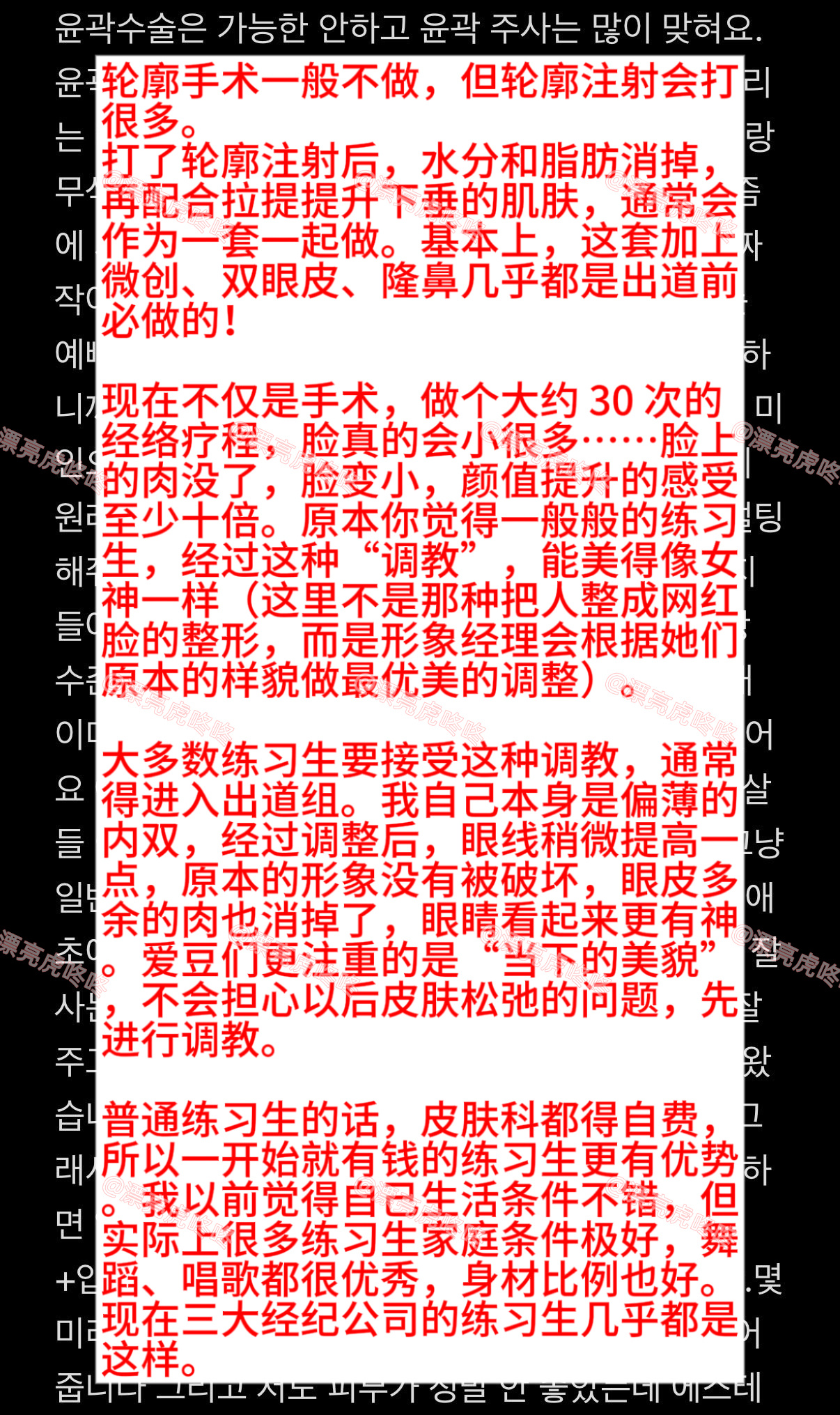【twi】韩网友爆料三大社练习生们必做的整形管理,以及其他相关情况(性取向、体型