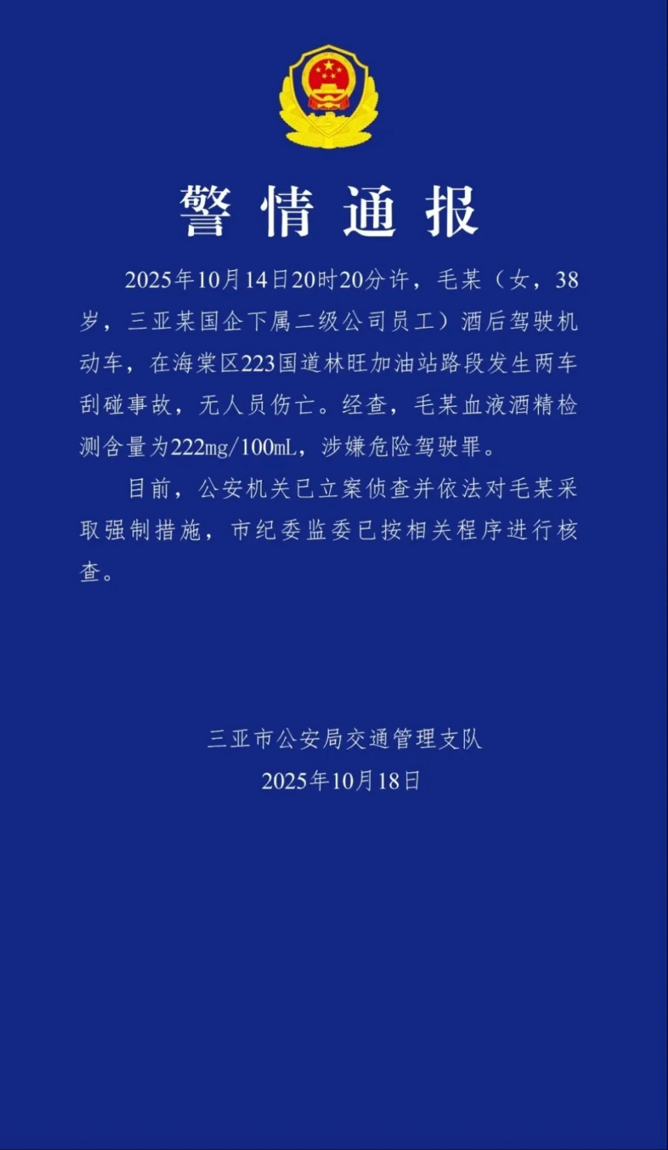 三亚撞劳斯莱斯女子酒精含量达222mg 女子直言“我是国企的,让市委市政府通报我”这算是破罐子破摔了吧