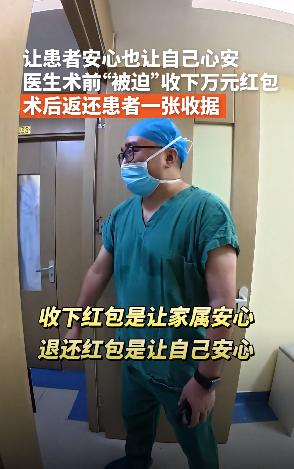 “这个医生火了!”北京朝阳医院,家属给医生塞了一个一万块钱的红包,医生没有推辞,但他反手就做了一件事情,温暖了所有人! “医生,您辛苦了,这点小心意请您一定收下。”一位病人家属小心翼翼地把一个装着厚厚现金的袋子塞进周医生(化名)的手里,那是1万元,代表着家属对医生的恳求,也带着一份深深的无助。 家属说这话时,声音发抖,眼神真诚,周医生没有拒绝,因为他知道,如果推开,家属反而会更不安,甚至怀疑是不是“不收就不尽力”。 只是之后他的做法,让无数网友在看过之后都竖起了大拇指。 手术后,病人在康复病房醒来,家属准备去缴第二阶段的住院费,却发现账上突然多了一笔钱。收费员告诉他们:“昨天周医生充了一万元,说是病人预存款。”家属愣住了,这个数额正是他们之前塞给周医生的那笔钱。 原来,周医生收下红包后,立刻将那笔钱充到了病人的住院账户里,直到病人术后恢复顺利,情况稳定后,他才把这件事告诉家属。他说:“我收下红包,是为了让你们安心。其实这钱早就回到该去的地方了。治病是我的职责,帮人是医生的本能。” 这件事后来传到了网上,引发了上千万网友的点赞。有人评论说:“原来真正的医德,不是挂在嘴上,而是藏在细节里。”也有人感慨:“这个医生收下的不只是红包,还有病人的信任和希望。” 事实上,在现实生活中大多数医院都禁止收红包,但即使如此,仍有不少病患家属出于感激或焦虑心理,想通过“送红包”来“买个安心”。 这种行为虽然情有可原,但从某种程度上,也让医生陷入了两难。拒绝吧,怕家属多想;收下吧,又违背制度,而周医生的做法,正是在人情与规则之间,找到了一种平衡。 他既没有直接拒绝让家属难堪,也没有让红包成为“灰色交易”。他用实际行动告诉家属:“医生不是拿钱才救人,而是救人本就该尽心尽力。”这一举动,既维护了医德,又守住了人情。 所以真正的医者,不只是治病救人,还要懂得治愈人心,周医生的做法,看似简单,却化解了无数医患之间的隔阂。也许真正的善良并不是刻板的执行规定和标准,而是用更温柔的方式,帮人渡过难关。 有网友留言:“那一万元,值了。值的不只是手术成功,而是遇到一个真正的医生。” 世上最温暖的事,莫过于有人在你最无助的时候,默默替你点亮一盏灯,而周医生做的,正是这盏灯。 信息来源: 澎湃新闻2025-09-24报道丨让患者安心也让自己心安,医生术前“被迫”收下万元红包,术后返还患者一张收据 文丨小王 编辑丨史叔