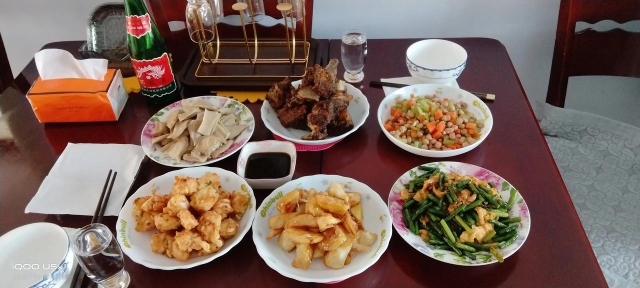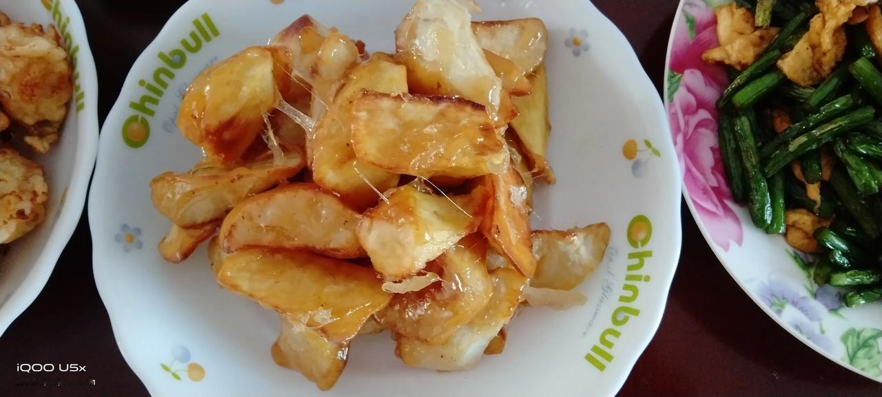 今天老伴儿上市场买了大葱,买了土豆还有地瓜,忙乎了一上午,我说辛苦了,陪你喝点,我做几个菜,犒劳犒劳你,老伴儿说做两个够吃就行了,我说喝酒最少的四个菜,没有四个菜,喝酒不动筷儿[呲牙]我做了六个菜,每人喝了三两酒。炸虾仁儿,肚领沾辣根,糖溜地瓜,烤牛排,小菜儿,蒜苔炒鸡蛋。 老伴儿说,这是大厨级别,饭店没这好吃,谢谢夸奖[呲牙]