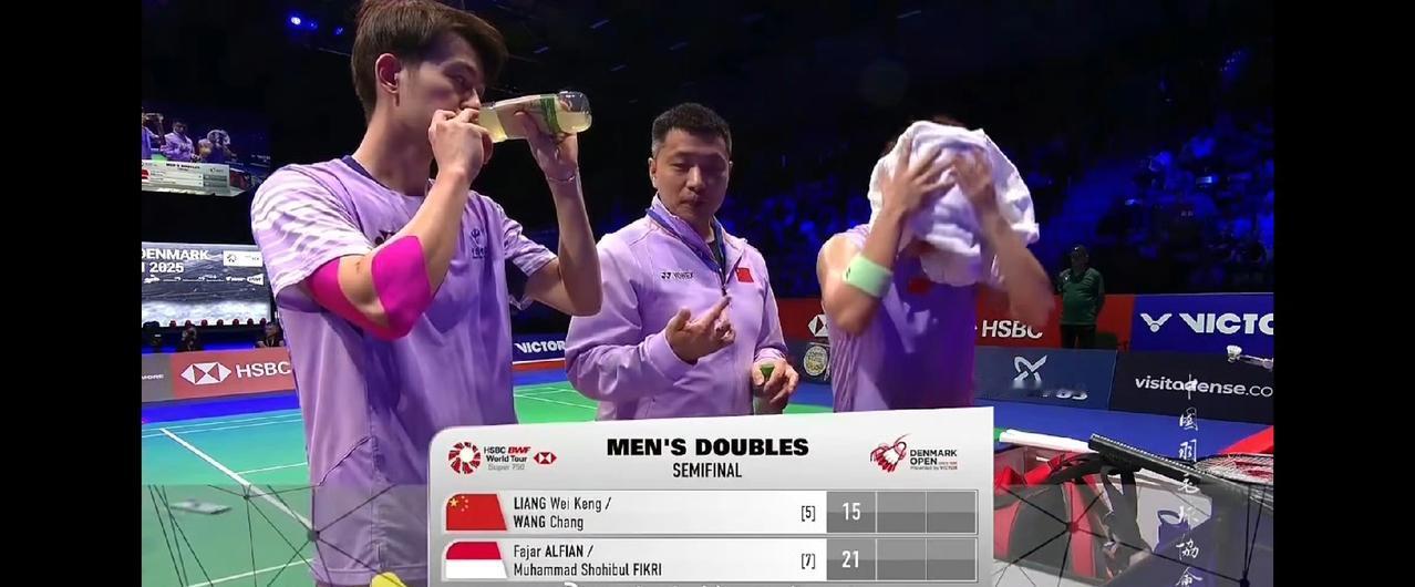 男双半决赛! 梁王组合🇨🇳首局失利! 第一局梁伟铿/王昶🇨🇳 15-21 不敌印尼组合🇮🇩阿尔菲安/菲克里。 本来前半局梁王打得不错,从球拍吃球那儿开始连丢了好几分,两人失误太多了。 印尼双菲组合稳定起来会比徐金更难打呀, 这是2025年丹麦羽毛球公开赛男双半决赛,梁王赶快调整状态,加油[奋斗]!评论区继续播报战况!