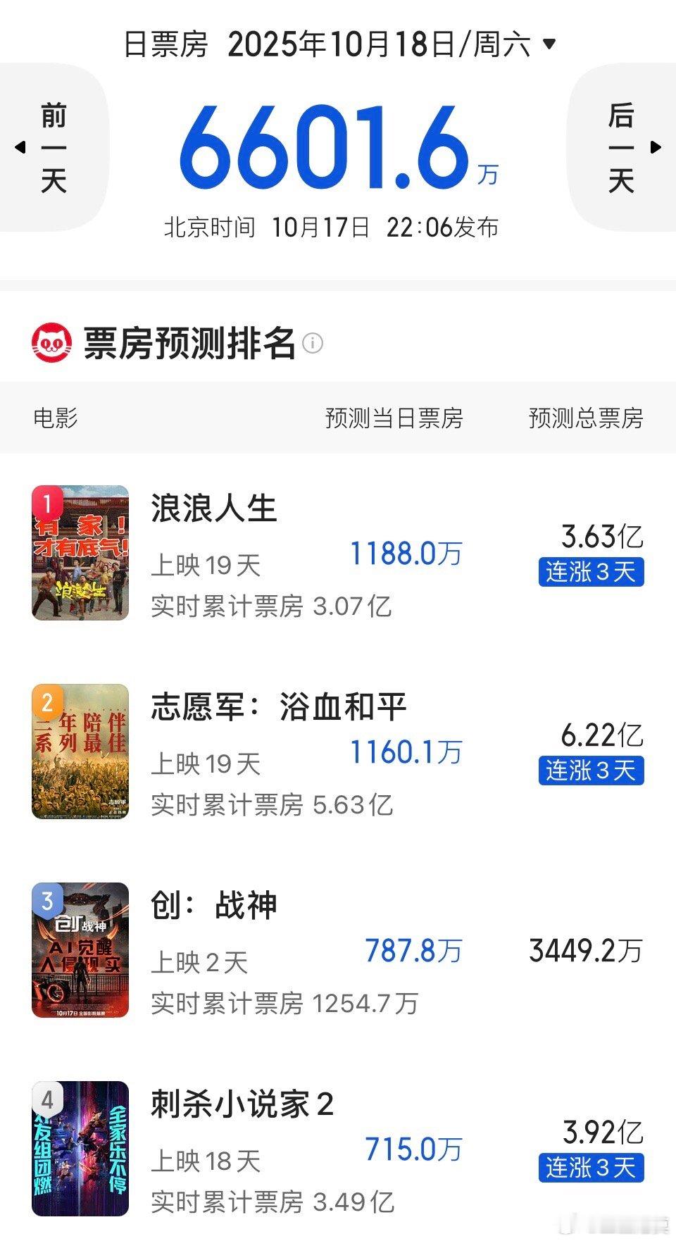 浪浪人生票房破3亿 上映第19天,《浪浪人生》票房破3亿。不过按目前走势,影片应该能冲4亿。《浪浪人生》今天的上座率再次领先。预测票房也在上涨。