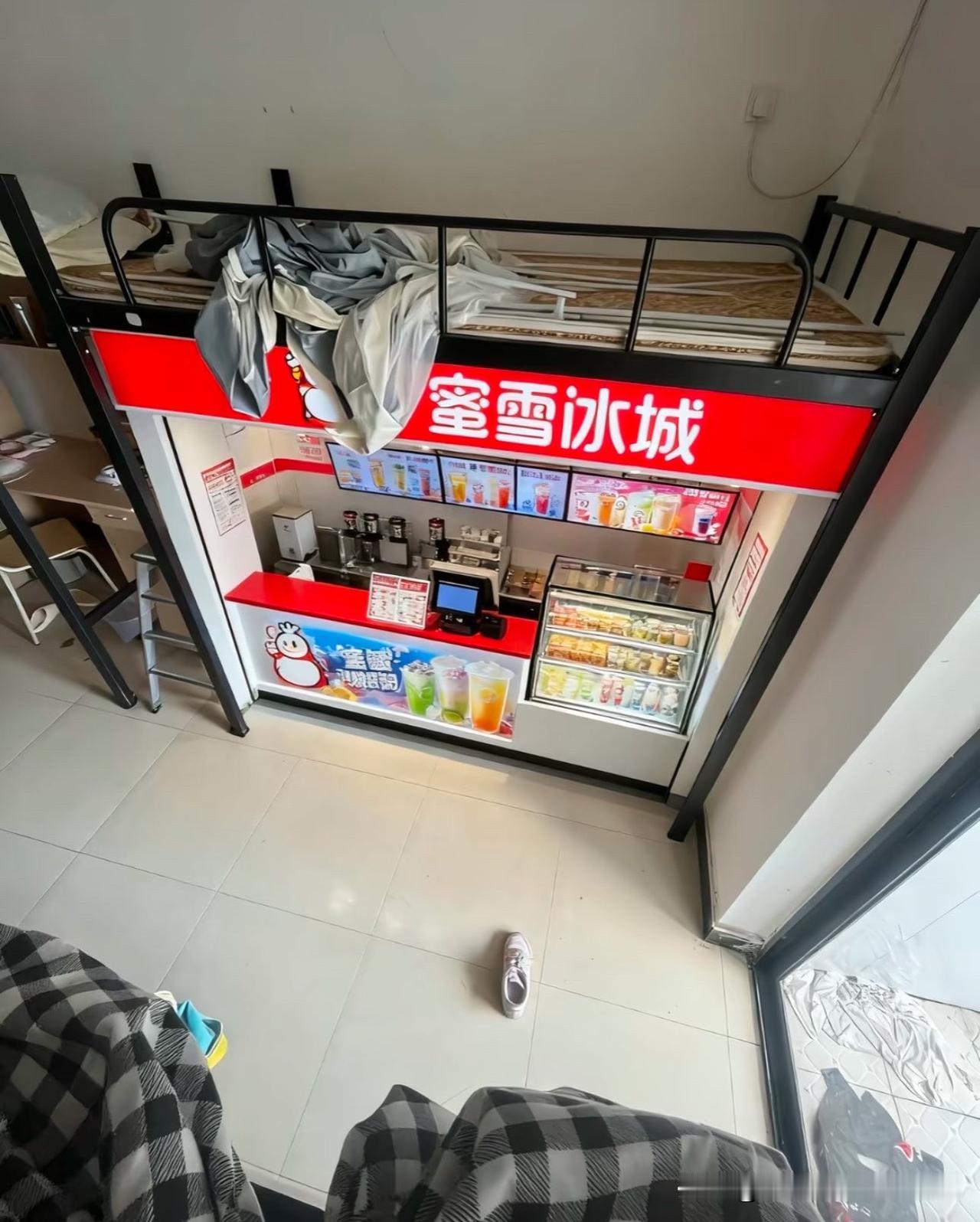 我的妈!这位同学把自己的宿舍的工位改成了蜜雪冰城,他说要在蜜雪冰城里边上班。那他的生意会好吗?