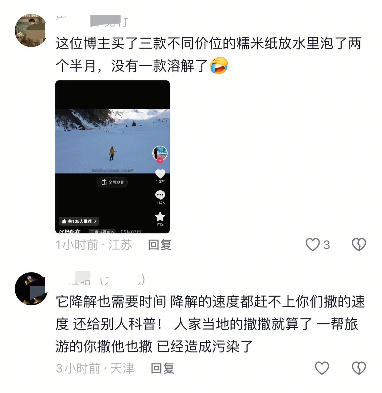 呼伦贝尔撒纸片?这次真不是大妈…… 近日几位游客在草原撒纸片玩的很欢乐,不少人看到视频后又气愤又担忧,这可是野外自然环境,年轻人应该敬畏草原而不是人为制造垃圾。有人解释称这种纸叫做“隆达”,是可降解糯米纸,祈福用的没有污染,但也有表示如果游客都去洒,草原也承受不了,而且有些并不是环保材料制作,降解也需要很久,有的地方也明确不允许抛撒。