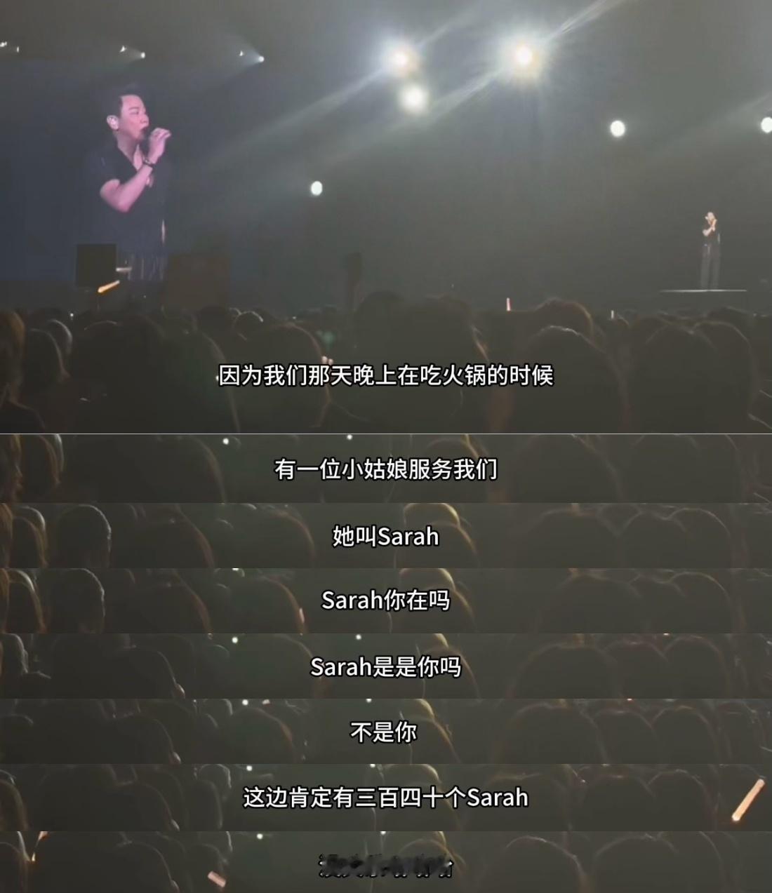 陶喆在舞台上找火锅店服务员 陶喆这波操作太有爱了!前一天吃火锅记住服务员名字,第二天演唱会直接开找,结果全场观众默契改名Sarah,这暖心互动直接冲上热搜!真诚永远是最动人的旋律,陶吉吉下次火锅约吗?