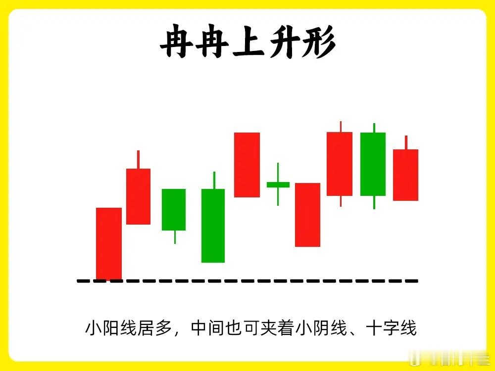 股价在下跌趋势的末期或是股价已经长时间的低位横盘以后,股价出现连续的小阳线小阴线,不能少于八根,但是底部开始逐步的抬高,开始向上,成交量也出现配合,开始逐步放大,量价齐升。走势和九九艳阳天类似。往往也是主力在低位吸筹的表现