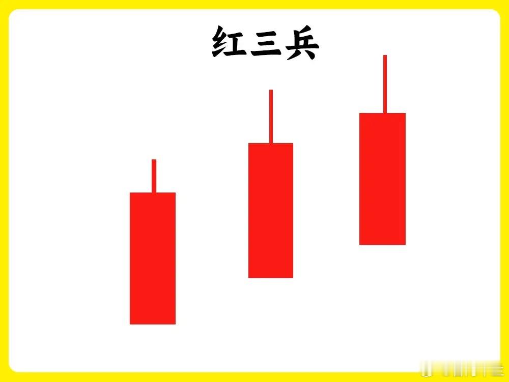 这个形态就比较经典!一般出现上涨趋势的初期,比较有重要的意义。有三根K线组合,三天的阳线,每一个收盘价都不断抬高,如果是在股价低位出现,往往都是三根小阳线。此时市场的多方力量已经比较强势。