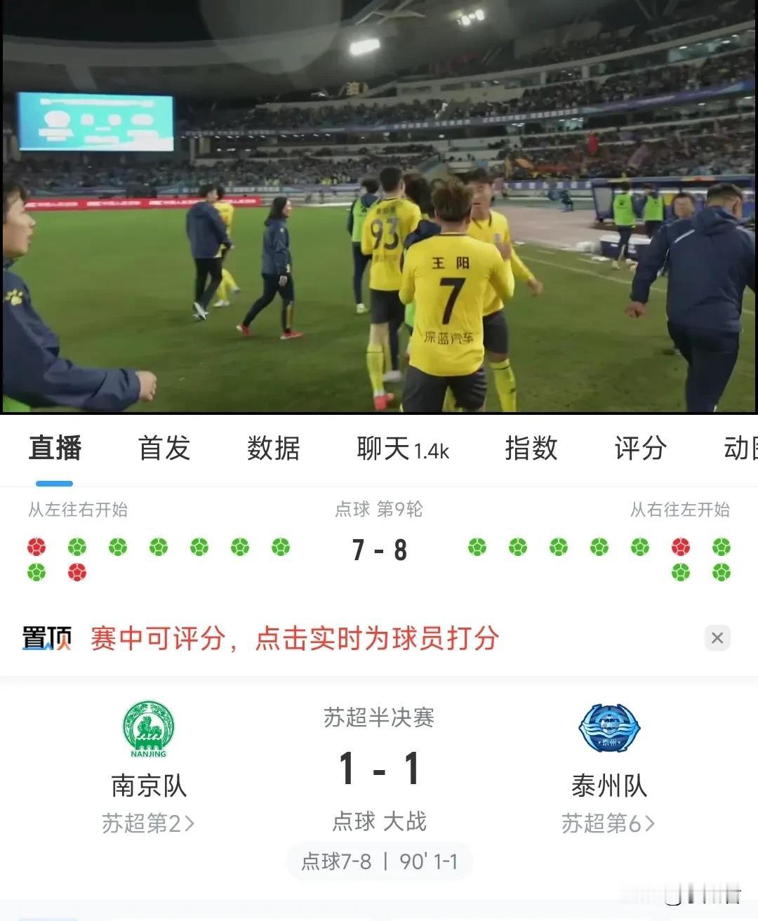 泰州凤凰逆袭,南京虽败犹荣。通过两轮点球大战,客场泰州9:8南京,晋级决赛。