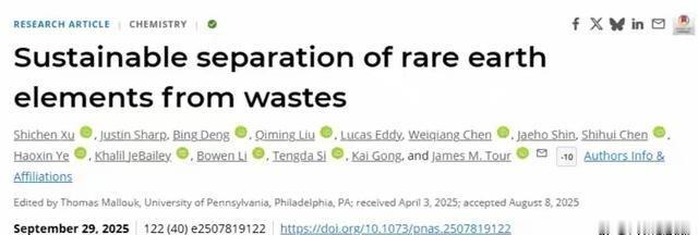 美国又赢麻了!美国高校发布信息:突破稀土提炼技术,回收率超过90%,很快就会摆脱中国卡脖子!这个逆转太幽默了! 图尔的研究重点在碳材料化学和纳米技术上。他开发富勒烯纯化、导电墨水、石墨烯合成,从饼干和昆虫做石墨烯。他发明激光诱导石墨烯,用于设备结构,还用石墨烯量子点捕获放射性核素。2019年发现闪速石墨烯过程,从煤、石油焦、垃圾快速制石墨烯,帮环境回收材料。他在分子电子学上也下功夫,造出纳米车,有独立转轮和光激活电机。 他证明Feringa电机能用光移动分子,不是靠STM电流。图尔参与公司董事会,如Dotz做石墨烯量子点,NeuroCords修脊髓,Xerient治胰腺癌。他的实验室推进分子纳米机器,比如纳米钻穿细胞膜。他还写书《生命起源之谜》,质疑起源理论。到2025年,图尔团队继续扩展闪速加热应用,回收贵金属和稀土,推动可持续材料发展。 莱斯大学团队在图尔带领下,开发闪速焦耳加热结合氯化技术,从废弃磁体提取稀土元素。这项工作2025年9月29日发在《美国国家科学院院刊》,回收率超90%,纯度超90%。方法用电流短脉冲快速加热材料,几秒内温度升到数千度,利用金属氯化物生成自由能和沸点差异分离。稀土如钕、镝转为氯化物蒸气收集,铁硼等留残渣。 比传统溶剂提取快得多,能耗低500倍,温室气体排放减80倍,没酸碱废水,残渣还能农用。这技术针对电子废物中钕铁硼磁体,来源是旧硬盘电机。美国稀土产业依赖外部,开采储量有但效率低,成本高,环保难。选矿工艺不精细,难分离高纯精矿。深加工弱,高性能稀土材料如永磁体大多进口。 中国稀土提炼技术全球领先,从上世纪起投入研究,积累经验。政策支持资金注入,引进设备,推动创新。市场需求大,企业优化工艺,确保质量价格竞争力。产业链完整,开采到应用协同,促进技术传播。中国控制七成开采,九成加工,出口管制加剧美国紧张。美国想靠新技术摆脱依赖,但稀土体系复杂,提炼只是一环。上游开采能力弱,中游加工不全,下游应用靠进口,短期难独立。闪速技术环保高效,但从实验室到工业需设备调整,成本控制,环保标准。全球稀土格局稳定,中国优势强,美国建自家链条不是一两天的事。 这项技术公布后,Metallium公司获得专利许可,2025年9月验证过程有效。10月15日新闻确认回收率90%以上,纯度90%,时间几秒,比传统快。Metallium计划12月在德克萨斯投产首座商业设施,初始产能处理数吨废料,提取钕、镨、镝等。工厂用FJH技术,零酸废水,低成本高产量。公司独家授权商业化闪速加热用于关键金属回收,目标建全国网络。美国稀土项目推进,如Round Top试点,Brook Mine动工,Energy Fuels产高纯镝氧化物,但商业输出有限。中国主导85-90%精炼,地缘挑战大。美国国防生产法案资助分离厂,供应链重建需时间。 图尔继续扩展闪速加热,2025年发表新论文,如石墨烯在电池应用。他指导学生回收电子废物贵金属,开发激光诱导石墨烯空气过滤器,灭活细菌率高。团队与Zeta Energy合作锂电池,讨论碳支架氢存储。图尔参与纳米医学,推进分子纳米机器实验。到2025年10月,他的轨迹稳定,推动材料回收能源创新。美国稀土依赖中国未变,2025年进口170百万美元稀土。中国新规要求稀土采选加工和磁体制造技术出口需许可证,外国企业用中国技术也需批。全球需求涨,电动车风电国防用稀土多,美国急建本土链。 美国努力减少稀土依赖,2025年MP Materials与国防部合作建垂直集成磁体供应链。Lynas在马来西亚产商业镝氧化物,非中国首家。澳大利亚给加工稀土税优惠,吸引投资。中国占全球稀土加工90%,通过全球收购巩固地位,如2025年5月盛和资源买坦桑尼亚Peak项目。稀土回收技术进步,但商业成功不确定,需市场采用。Metallium与莱斯合作扩展FJH,直接分离单个稀土元素,简化溶剂提取。研究获能源部支持,目标国内精炼能力。闪速技术帮回收,但整体供应链需整合矿采和回收,形成混合模型。 稀土循环经济评估显示,回收技术和政策框架关键。全球需求绿科技涨,与中国供应主导冲突。美国推动本土加工,但激励有限,税环境需改善。日本加拿大澳大利亚监管友好,促投资。中国过往环保代价大,现在控制出口技术,给西方警告。北京规则影响外国企业供应链。闪速技术代表突破,帮美国回收废料,但规模化需时间资金。Metallium德州试点是关键步,从科学到工业。整体看,美国稀土独立路长,但这类创新给希望。