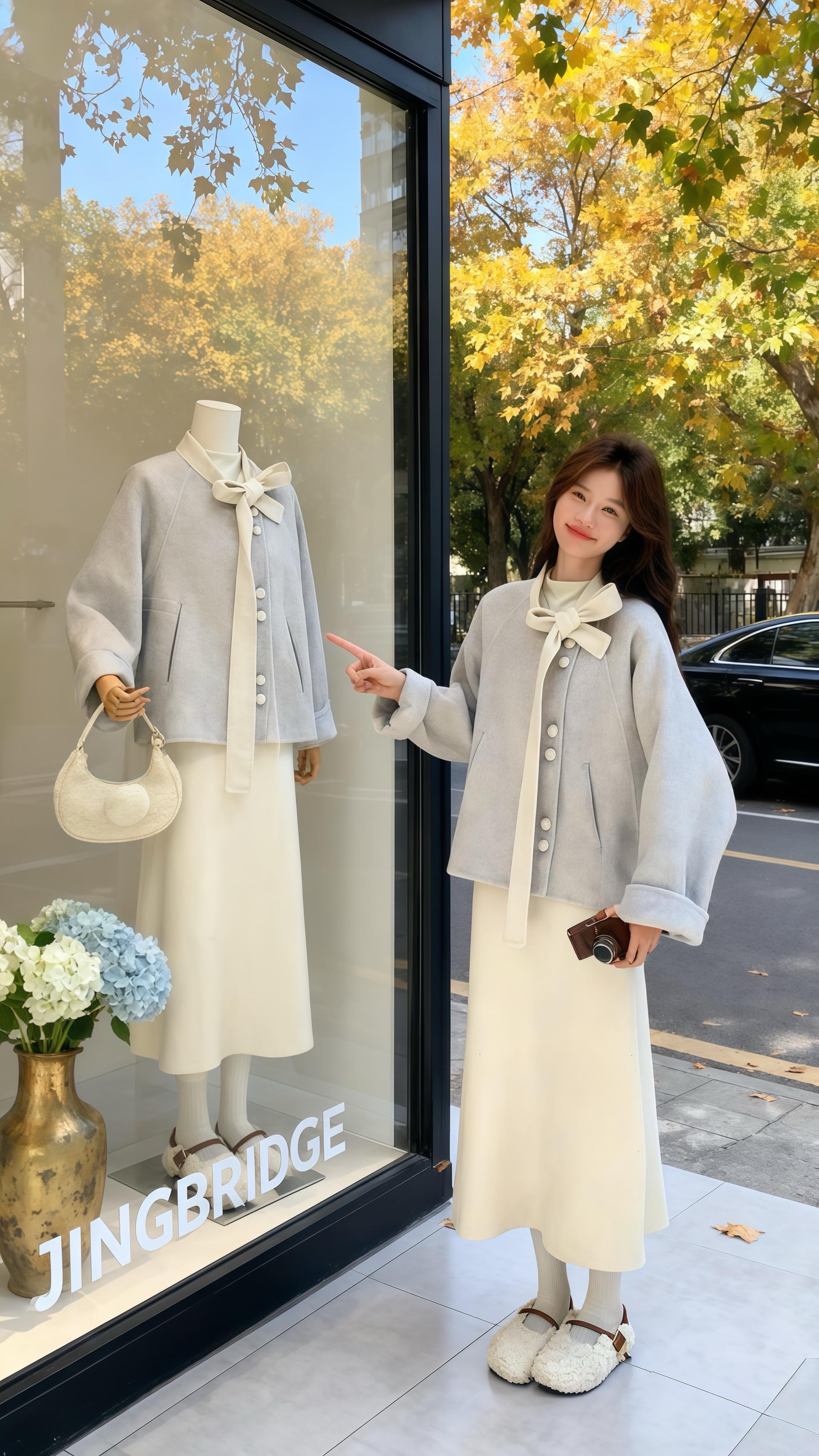 《穿一件羽绒服,在深秋活出两种风格人生》林晚在JINGBRIDGE橱窗...