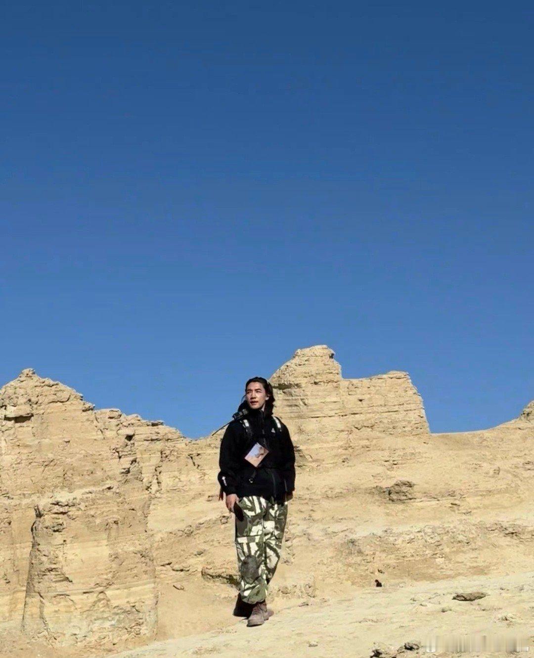 此沙素颜状态 哇塞!此沙素颜出镜真的把我帅到了,这五官分明得像是雕刻出来的,随便一个角度都好看。在戈壁玩了一整天,皮肤还是那么好,笑容干净又治愈,完全就是阳光大男孩的代名词,让人忍不住多看几眼。