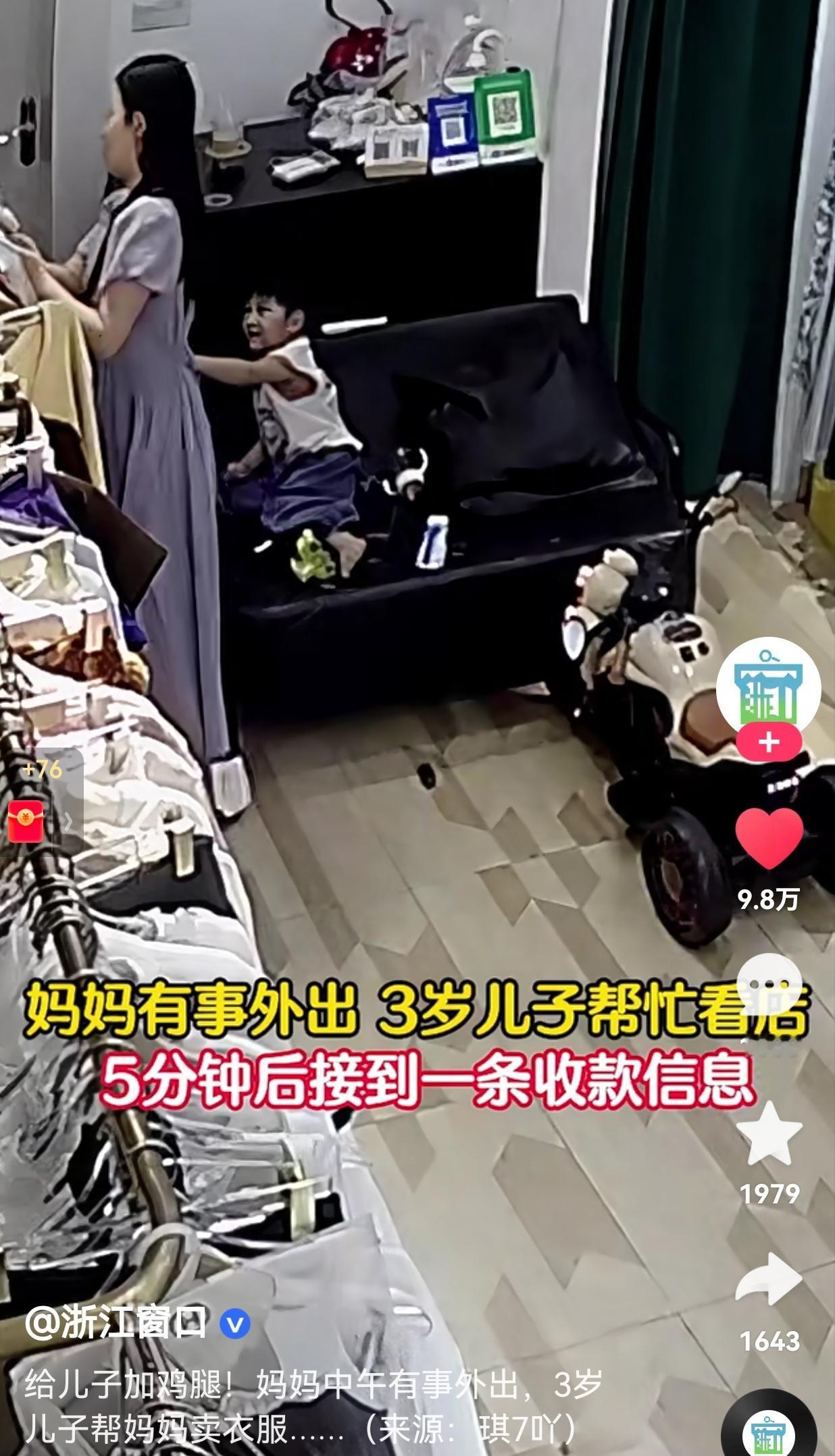 还真的是一个招财宝宝呢?妈妈有事外出,3岁的儿子帮忙看店,妈妈刚走没多久,就来了