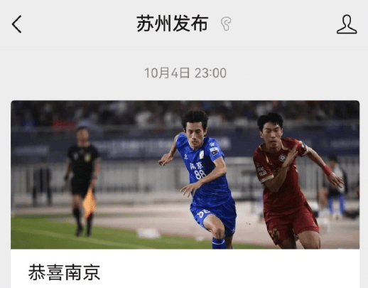而《现代快报》发现,这次的祝贺不同于以往——之前苏州发布祝贺其他球队时都采取了比较平淡的标题,这次的标题则充满了激情。