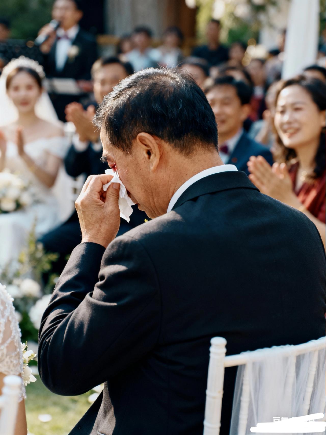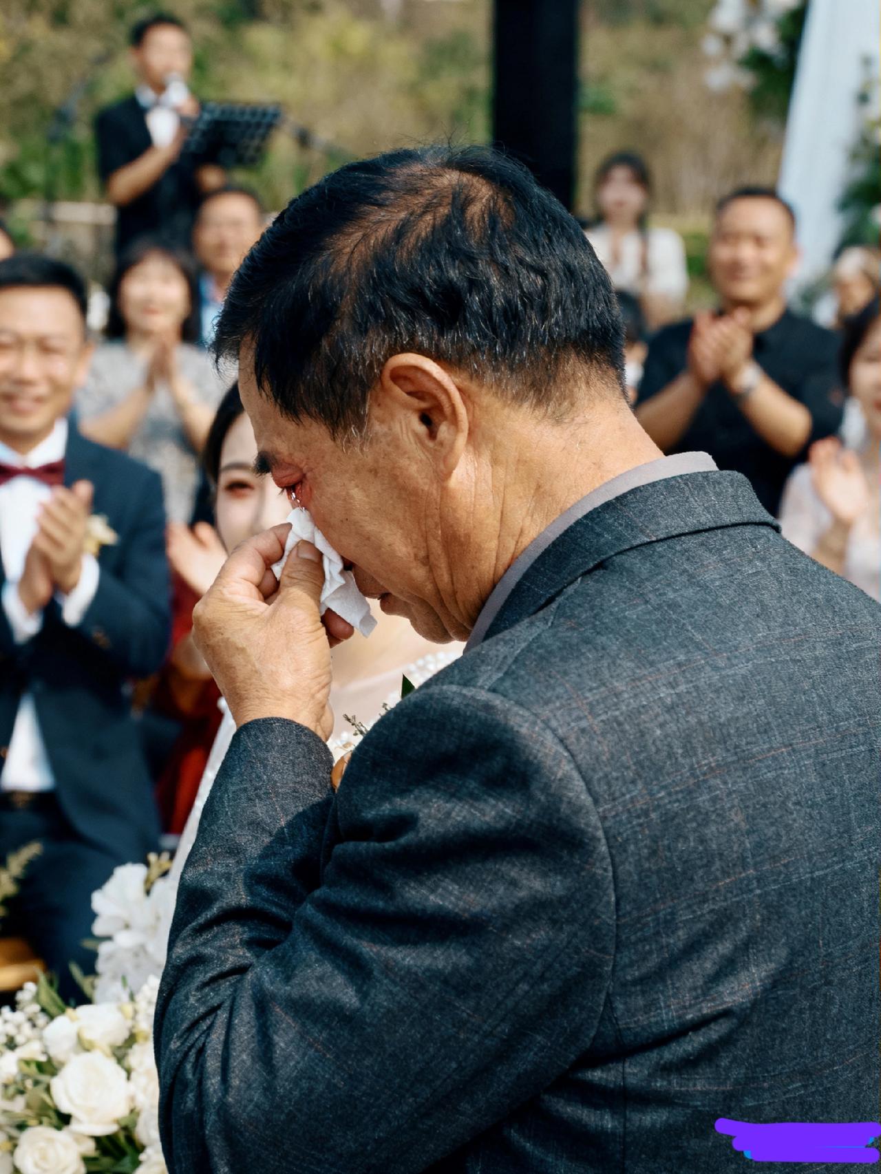 女儿出嫁当天,父亲背过身偷偷抹泪,网友:这通红的眼睛藏着20多年的牵挂 婚礼现场的音乐正热闹,宾客的掌声此起彼伏,可站在女儿身边的张叔,却悄悄把脸转向了墙角。 镜头扫到他时,原本挺直的肩膀微微垮着,右手攥着纸巾反复蹭着眼角,指缝里露出的眼尾又红又肿。刚才还笑着叮嘱女婿“好好待她”的男人,此刻连声音都不敢抬高,怕一开口就带了哭腔。 谁都记得,女儿小时候第一次学骑自行车,摔得膝盖流血,是张叔蹲在地上吹着伤口说“不怕,爸爸在”;高考结束那晚,女儿抱着录取通知书哭,也是他默默递上冰西瓜,说“想去哪,爸爸都支持”。二十多年来,他从不让女儿受半点委屈,连重话都舍不得说一句。 可今天,他亲手把女儿的手交到另一个人手里。仪式上交换戒指时,他站在台下,看着穿婚纱的女儿笑靥如花,眼眶又一次红了。有人问他是不是舍不得,他梗着脖子摇头,却在转身给宾客倒酒时,偷偷擦掉了滑落的眼泪。 后来有人把这段视频发到网上,评论区瞬间破防:“我结婚那天,我爸也是这样,明明前一晚还说不会哭,结果全程眼睛都是红的”“原来爸爸的坚强,在女儿出嫁那天会彻底破防”“看哭了,这哪里是嫁女儿,明明是送走了自己的全世界”。 其实父亲的爱从不会挂在嘴边,他不会像妈妈一样抱着你哭,却会在你看不见的地方,把牵挂藏了一遍又一遍。那些通红的眼睛里,装的不是软弱,而是二十多年来,从未说出口的“舍不得”。 婚礼上新郎父亲 新娘爸爸的致辞 嫁女儿伤感视频