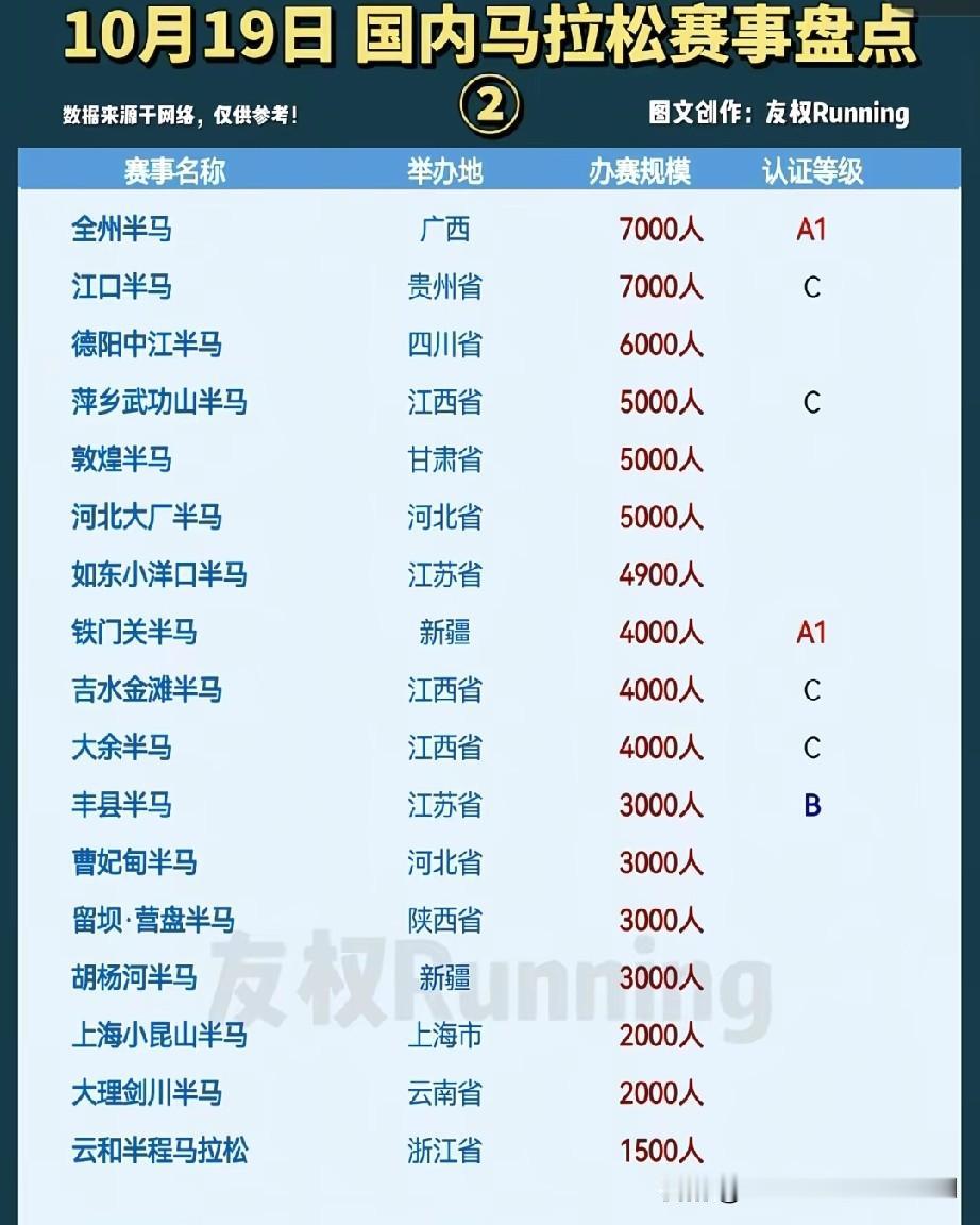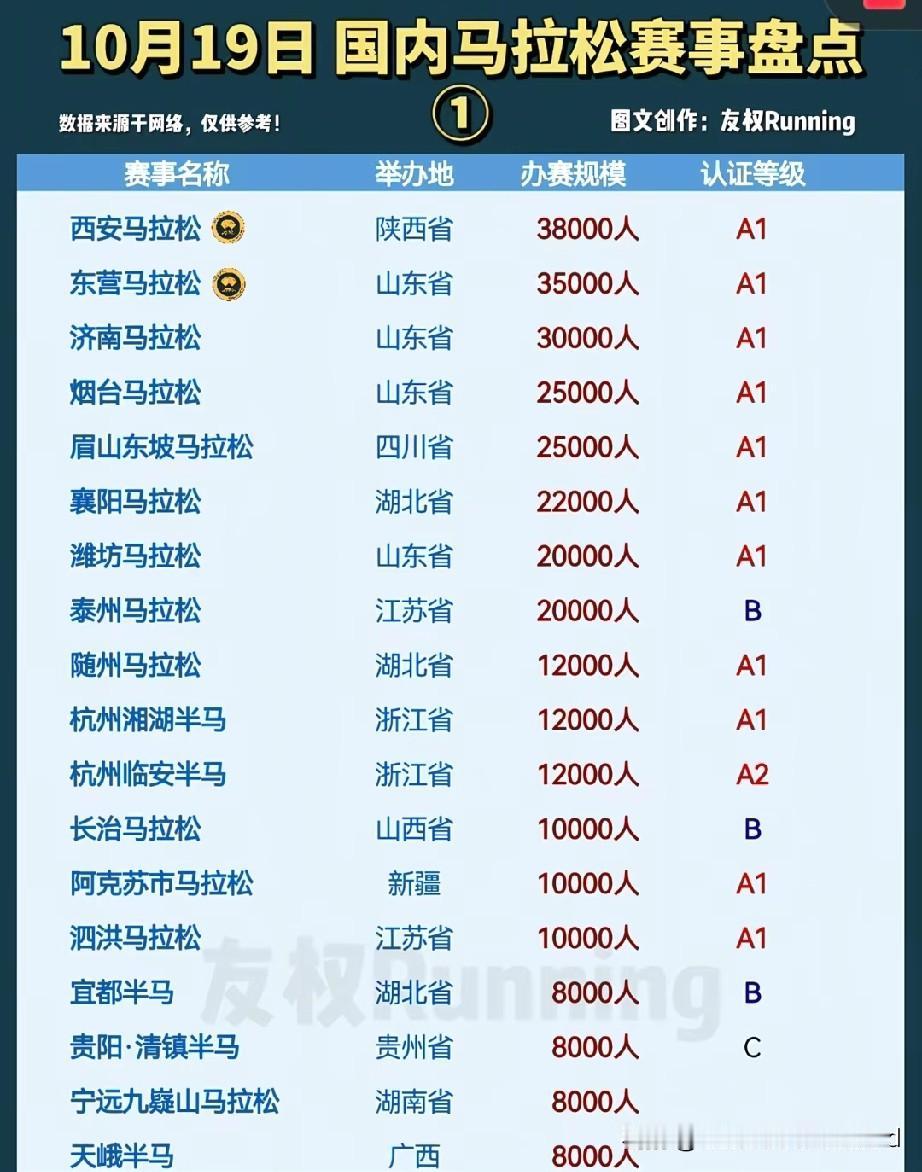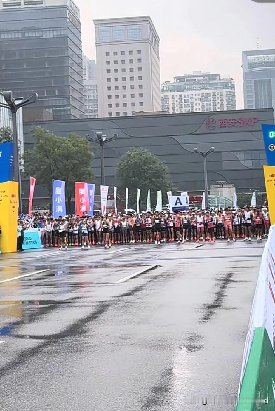 西安马拉松早七点半开跑, 蒙蒙细雨中, 38000人的参赛者, 在自发大合唱的国歌声中跃跃欲试。 一声令下,万箭齐发,冲进永宁门, 开启西马的征程。 10月19号, 同一天的马拉松, 举办城市知多少?