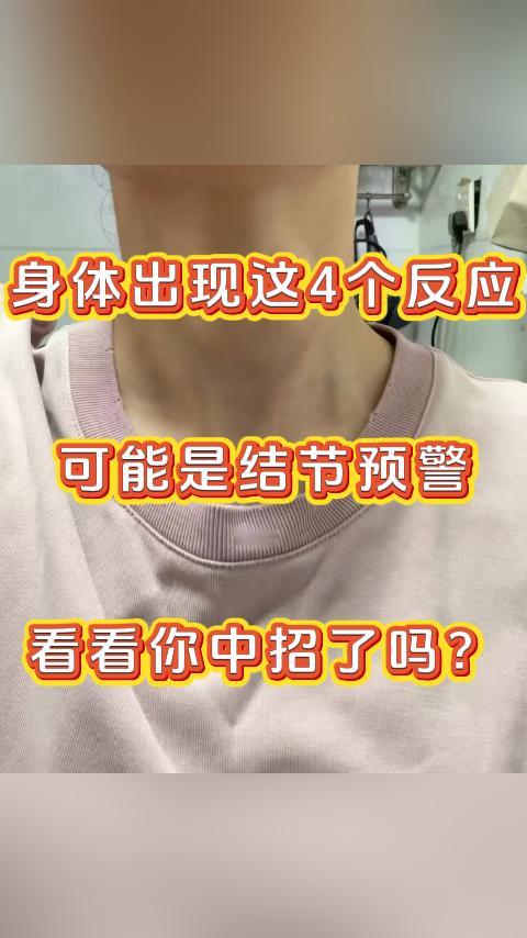 身体出现这4个反应,可能是结节预警,看看你中招了吗?我清楚这些患者有多焦虑,看着你们为病情担忧,我也是真心的于心不忍。今天想和大家聊聊结节的四个典型预警信号,希望大家能早发现早干预。 结节简单来说就是指身体器官或组织内出现的、与周围正常组织质地不同的小突起或肿块,它的形成原因很多,比如慢性炎症刺激、内分泌紊乱(如甲状腺结节与激素水平相关)、环境因素(如长期接触粉尘易引发肺部结节)、遗传因素以及不良生活习惯(如长期熬夜、吸烟)等。那么结节对于我们生活的影响究竟有多大呢?今天这个视频我们就来聊一聊。 结节出现之后,我们的身体通常会出现4个反应,第一个就是局部压迫感,若结节长在甲状腺,可能会压迫气管导致呼吸不畅;若长在肺部,可能会压迫周围组织引发胸闷、胸痛。第二个就是异常分泌物或症状,比如乳腺结节可能伴随乳头溢液,颜色多为无色、淡黄色或血性;皮脂腺结节可能出现局部红肿、疼痛甚至流脓。第三个就是器官功能异常,如甲状腺结节可能导致甲状腺功能亢进或减退,出现心慌、手抖、体重变化或乏力、怕冷等症状;肝脏结节可能影响肝功能,导致食欲下降、黄疸等。第四个就是结节区域外观变化,部分浅表结节(如皮下结节、甲状腺结节较大时)可在体表触摸到,质地或软或硬,部分结节还可能伴随局部皮肤温度升高、颜色改变。