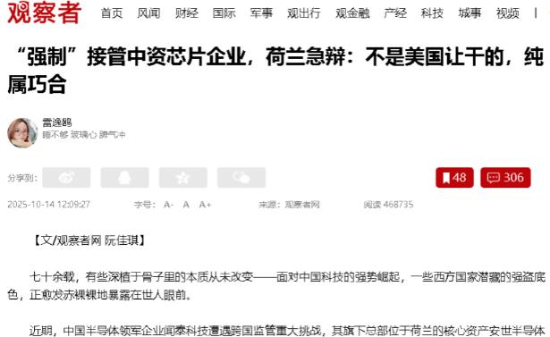 欧洲刚把中资芯片厂强制接管,中国反手就把仓库大门上锁——安世半导体惠州、上海两大基地里价值数亿美元的晶圆、封装件,如今一箱也飞不出保税区。荷兰正连夜跟中方部委商量豁免,语气急得冒烟。 安世半导体是谁?这家前身是飞利浦核心部门的老牌芯片企业,2019年被闻泰科技斥资340亿人民币全资收购后,迅速成为全球功率分立器件营收第三的巨头。 其生产的MOSFET、二极管等芯片,不仅占据全球40%的电动车逆变器市场份额,更是大众、宝马等欧洲车企的“芯片命脉”。更关键的是,安世在荷兰本土合规运营六年,五年间为当地贡献1.3亿欧元企业所得税,雇佣数千名员工,研发投入三年增长超150%,堪称“模范纳税人”。 可荷兰的“理由”却像一记软绵绵的太极——所谓“治理缺陷”,至今拿不出任何实质证据;所谓“保障供应链安全”,却在行动前一天紧随美国升级“50%规则”,将实体清单管制延伸至中企海外子公司。 更耐人寻味的是,法庭文件显示,美国早在6月就向荷兰施压:若想获得EUV光刻机维修零件豁免,必须先“清除中国在成熟制程领域的关键存在”。这场“接管”与其说是“依法应急”,不如说是美荷联手导演的一场“技术围剿”。 但荷兰万万没想到,中国反手就锁死了“仓库大门”。10月4日,中国商务部发布出口管制清单,明确规定:凡在华生产、涉及功率器件、模拟芯片、车规级封测的成品,一律需凭许可证出境,审批时间“不超过30个工作日”。 这看似合规的流程,实则给依赖中国“即时交付”的欧洲企业判了“死刑”。安世半导体惠州、上海两大基地内,价值数亿美元的晶圆和封装件瞬间被困保税区。 原本要发往大众、宝马的IGBT模块堆积如山,单日仓储费就烧掉十几万欧元;欧洲汽车业协会紧急测算:若断供持续,大众ID系列电动车每周将面临1.2万辆的产能缺口,德法意三国年底汽车产量或下调15%。 荷兰这才慌了神。10月15日,彭博社援引匿名官员消息称,荷方连夜向北京递交“技术安全承诺书”,愿意开放安世荷兰工厂的技术文档供第三方审计,只为换取中方出口许可的“白名单”。 可中方态度坚决:先解除托管,再谈许可。这一招直击荷兰软肋——他们忘了,安世虽在欧洲注册,但80%的封装产能和近50%的营收都扎根中国。 东莞的小信号组件封装测试基地年产量超500亿件,支撑全球70%的终端产品出货;临港晶圆厂专注车规级功率芯片,与安世主业高度契合。失去中国产能,荷兰的“技术守门人”角色瞬间变成“光杆司令”。 这场博弈的背后,是东西方科技竞争从单一领域对抗升级为全产业链博弈的缩影。中国近期实施的稀土出口管制,让阿斯麦的EUV光刻机核心部件(如精密激光器、磁铁)因缺料交付延迟。 而荷兰对安世的接管,本质上是科技霸权国家对资源优势国家的反制。更危险的是,荷兰开创了一个危险先例:合法完成的跨国收购,六年之后仍可能被“秋后算账”。 这种将商业问题政治化的做法,不仅让中资企业的海外投资面临巨大不确定性,更让全球产业链陷入“信任崩塌”的危机——如果各国都以模糊的“国家安全”为由随意冻结外资资产,谁还敢放心投资? 如今,安世半导体的命运悬在荷兰企业法庭的裁决上:若闻泰科技胜诉,控制权将恢复;若败诉,可能被迫出售股权。但无论结果如何,这场博弈已释放明确信号:在大国竞争背景下,关键技术领域的外资企业,即使合法合规,也可能成为国家权力干预的对象。 你觉得荷兰这次能扛住大众、宝马的催货压力吗?如果各国都学荷兰“接管”外资,全球产业链会变成什么样?评论区聊聊你的看法!
